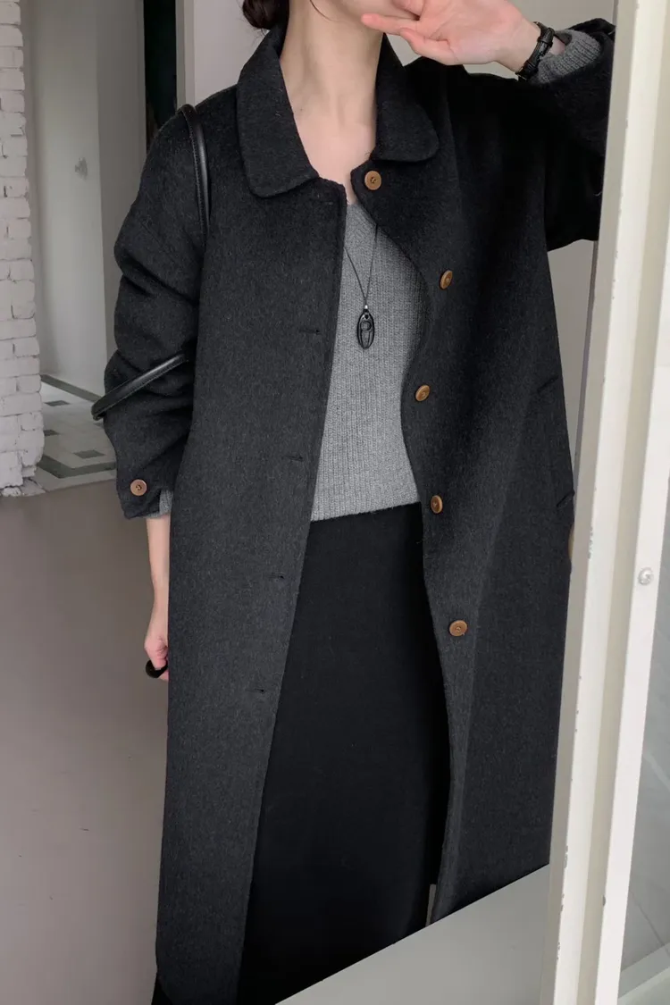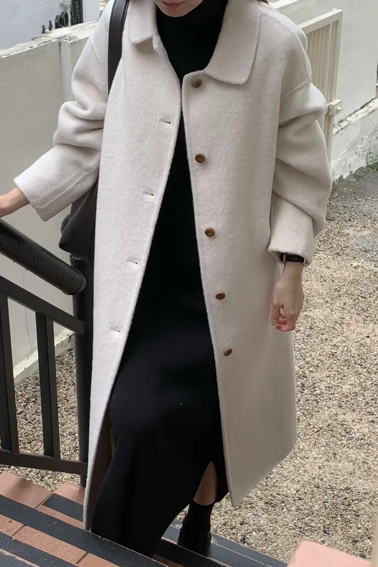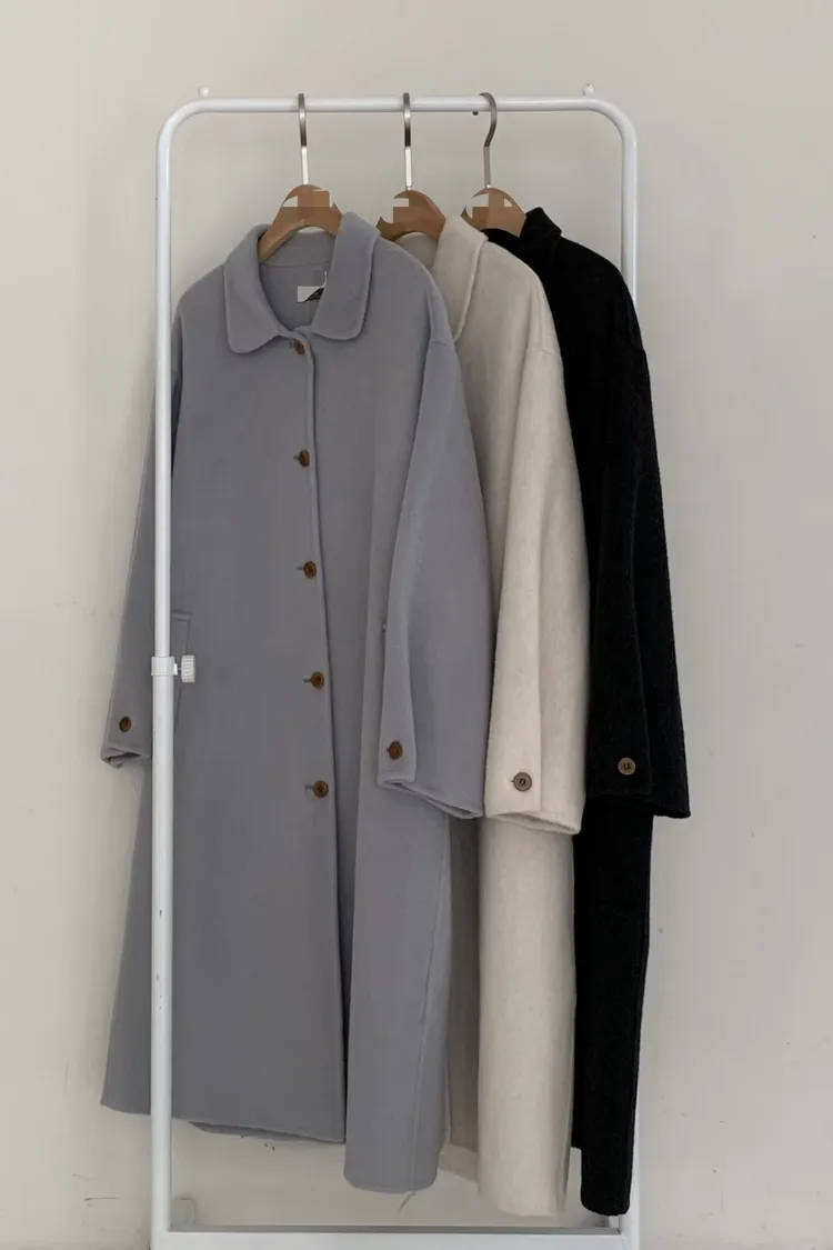 莫蘭迪色系質感長版羊毛大衣