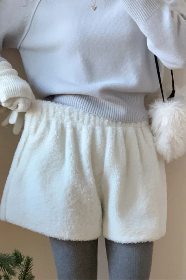 北極熊絨感百搭鬆緊短褲