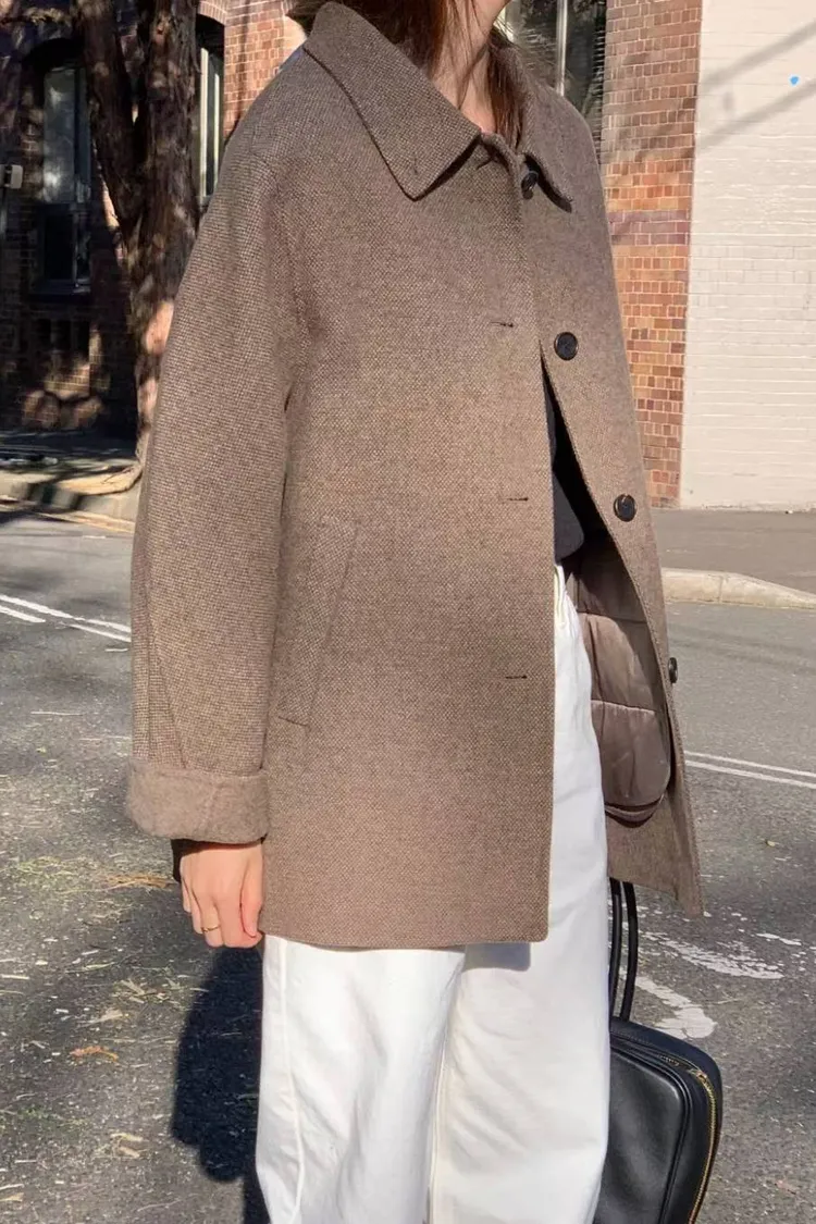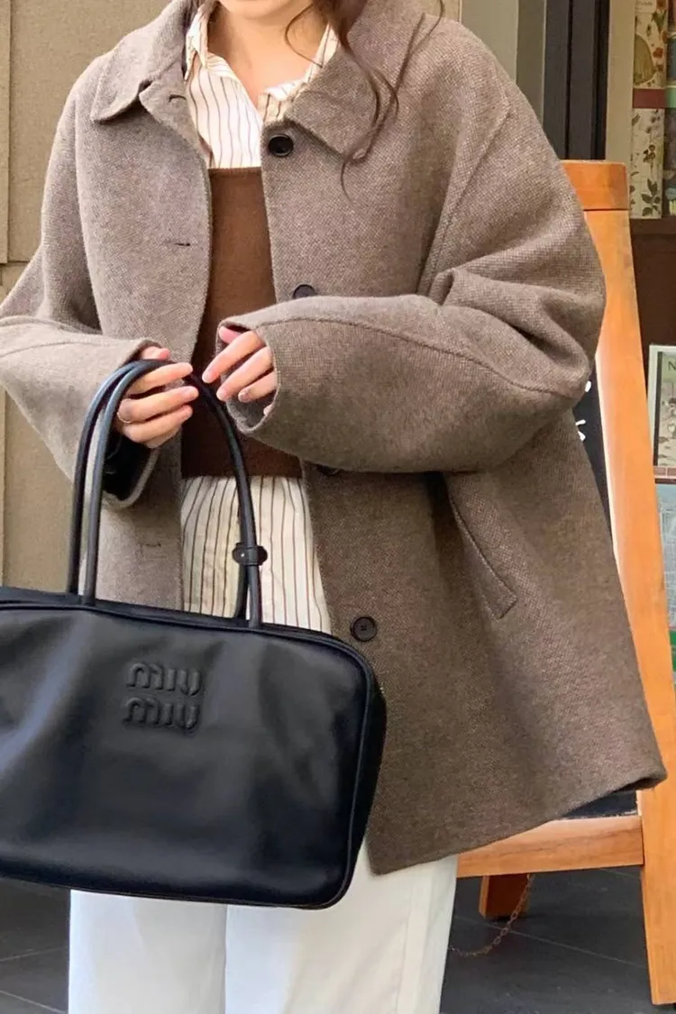 手工羊毛外套真的一穿就懂🤍 中長版剪裁修身又顯比例 內裡鋪棉可拆、拆後無內裡 整體線條乾淨優雅,很有歐系感 是那種「穿出門會被稱讚氣質很好」的款式✨ 肩44/胸60/長73/手袖64 材質 美麗諾羊毛 重量 900g