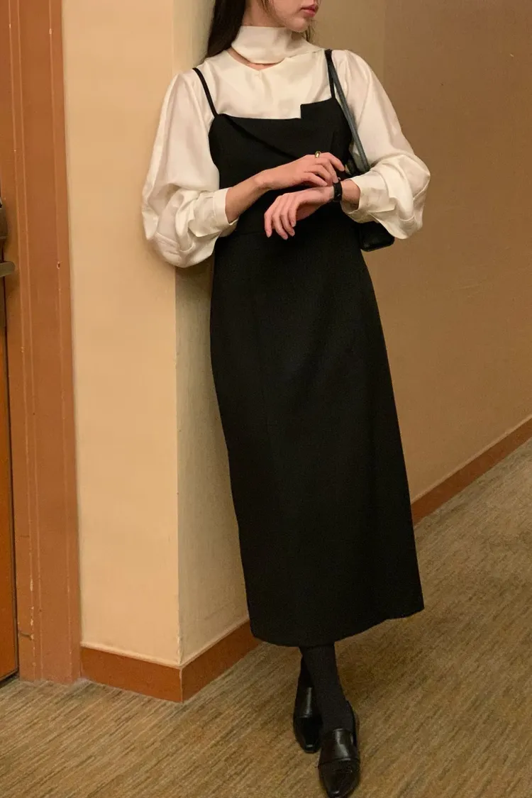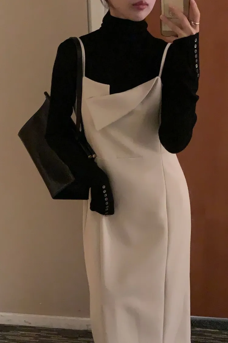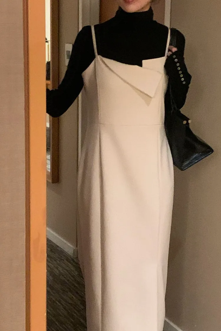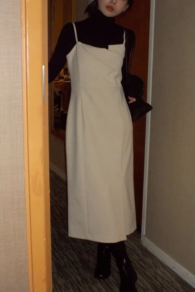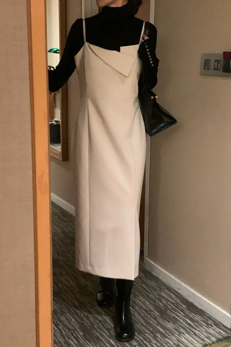 一穿上就是千金小姐👗✨ 收腰剪裁超顯身形,肩帶設計增加造型感 單穿優雅、內搭高領也好看 厚磅材質且肩膀不可調,單邊有開衩 重要聚會或約會穿這件準沒錯~ 尺寸 胸40/腰38/臀45/長115 材質 棉+聚酯纖維