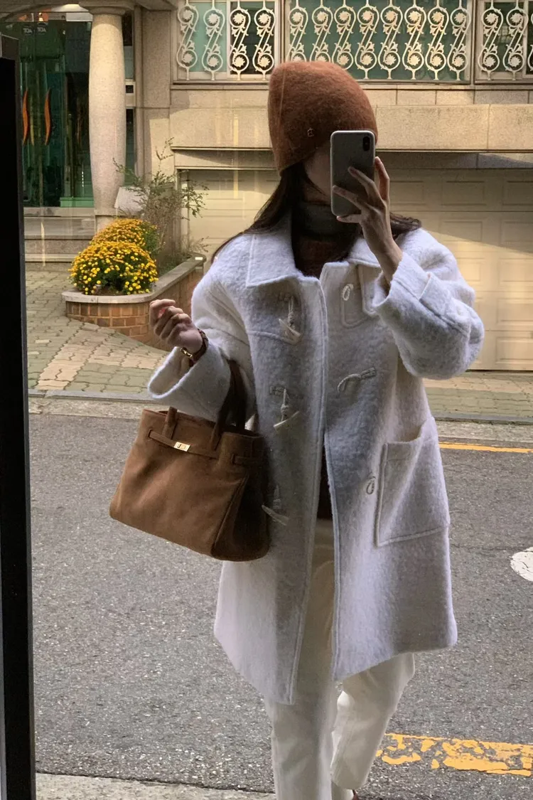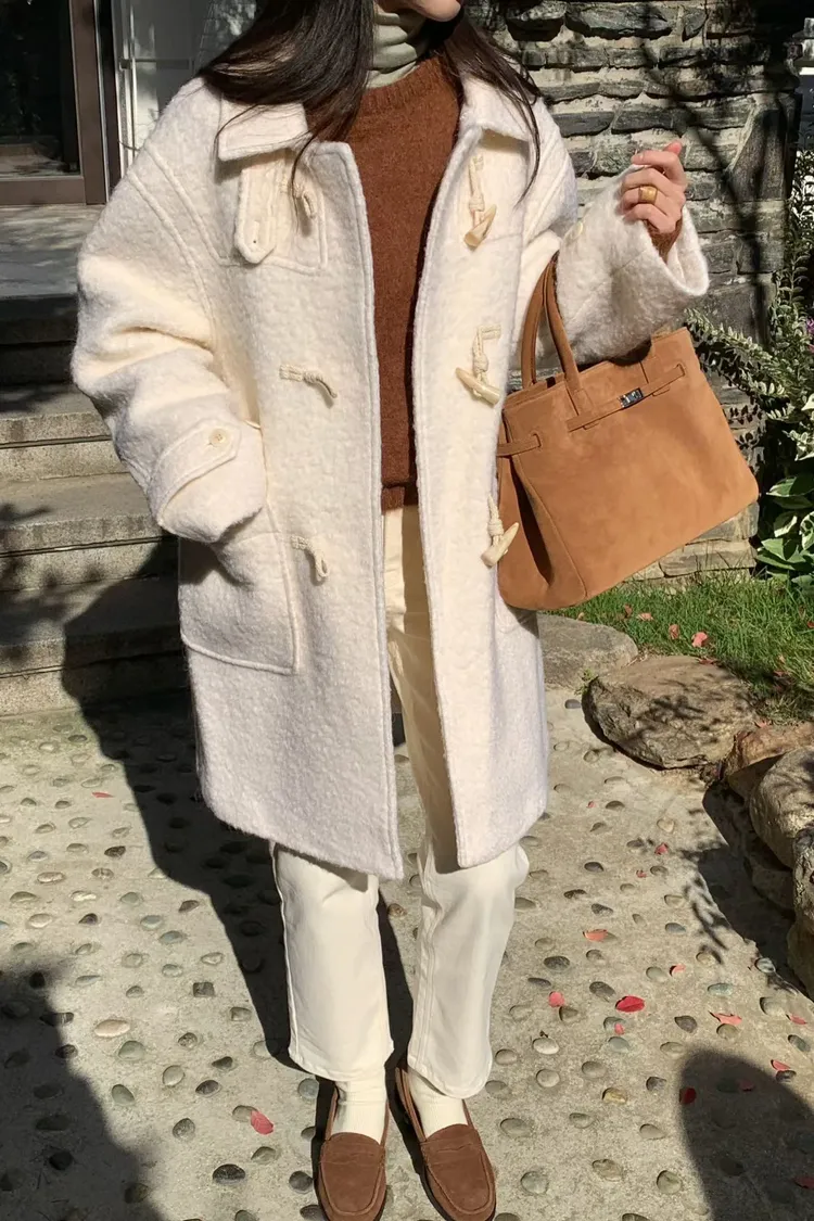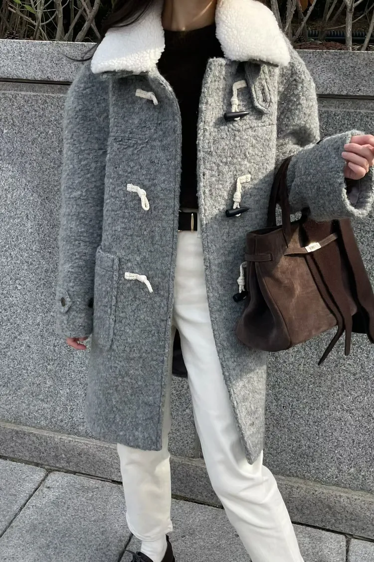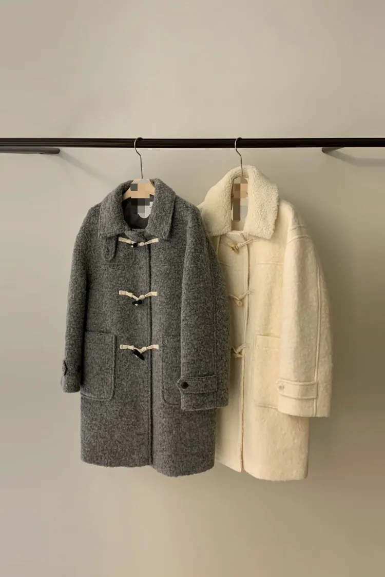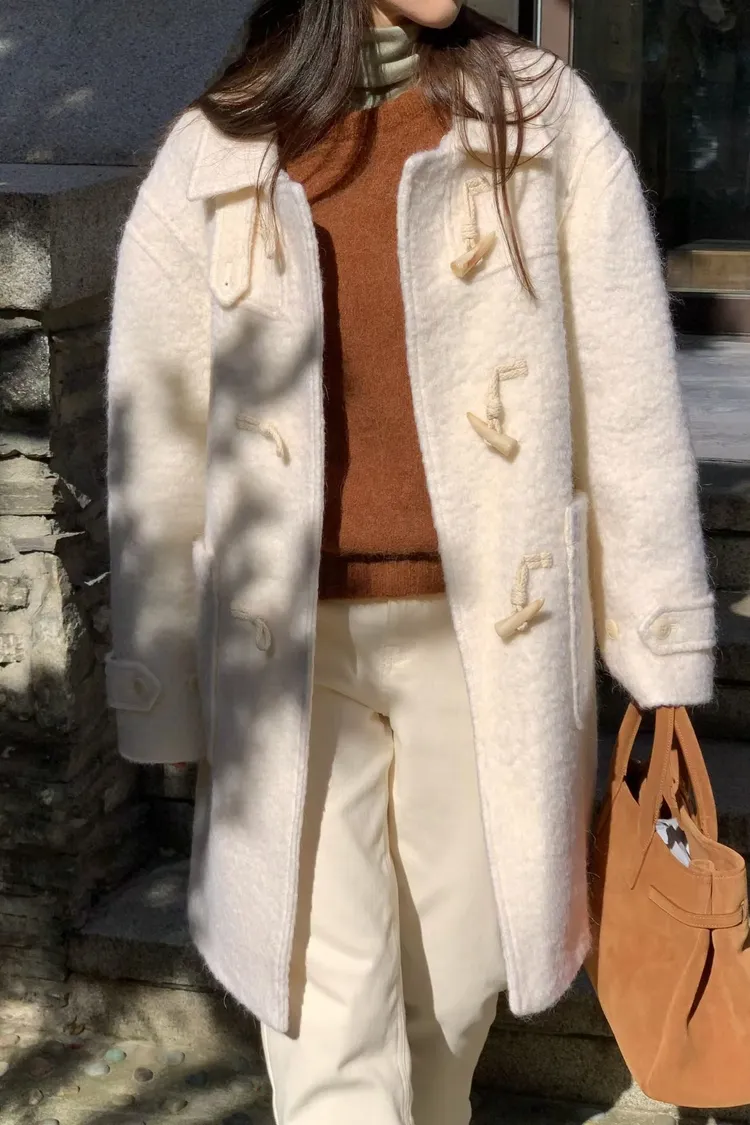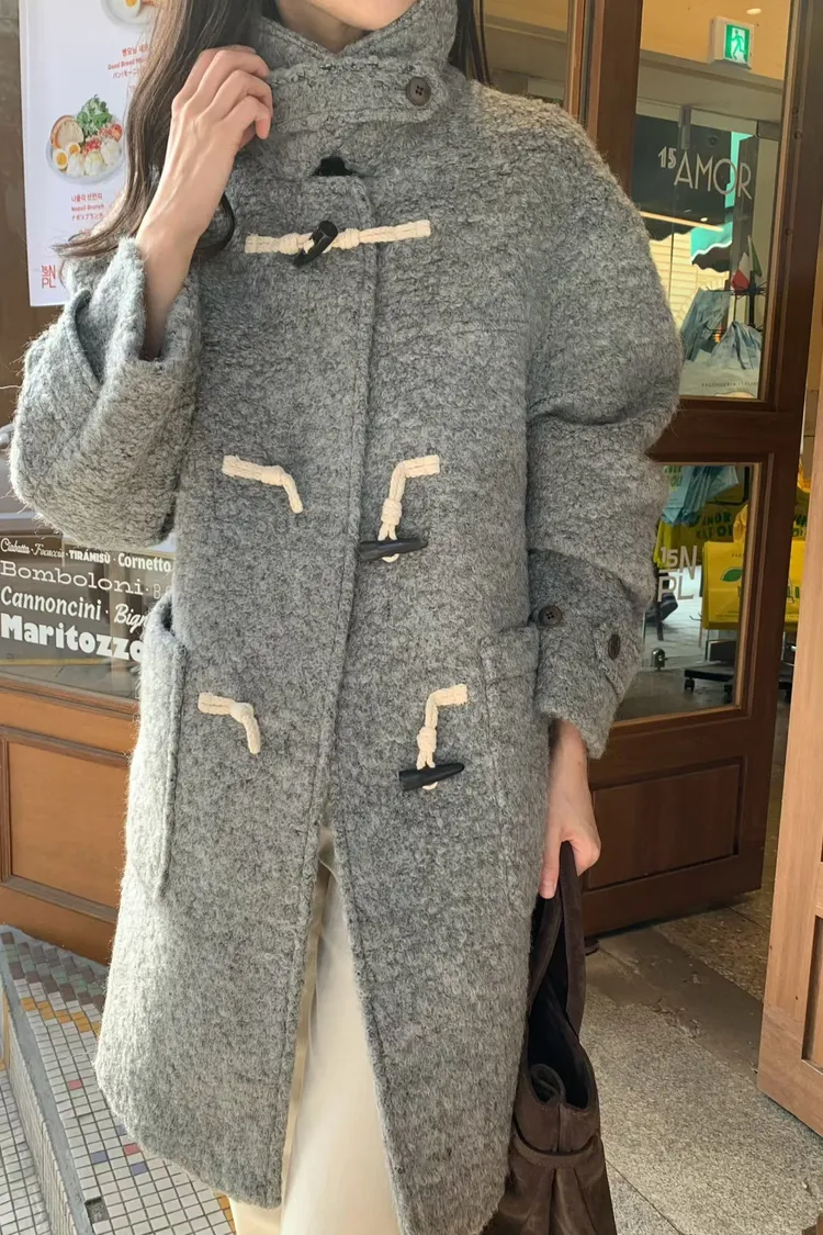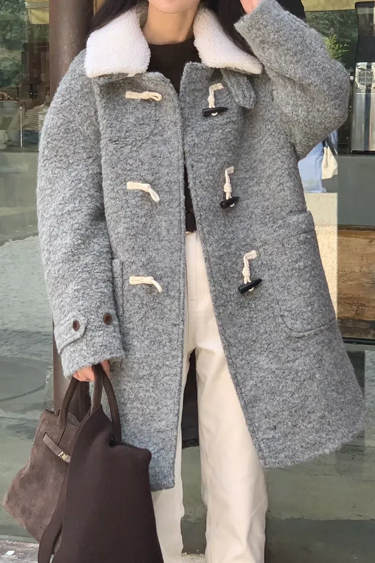 可拆毛領牛角釦羊毛外套