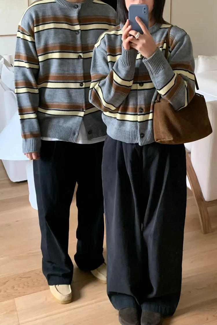 男女都可穿! 秋冬條紋針織外套