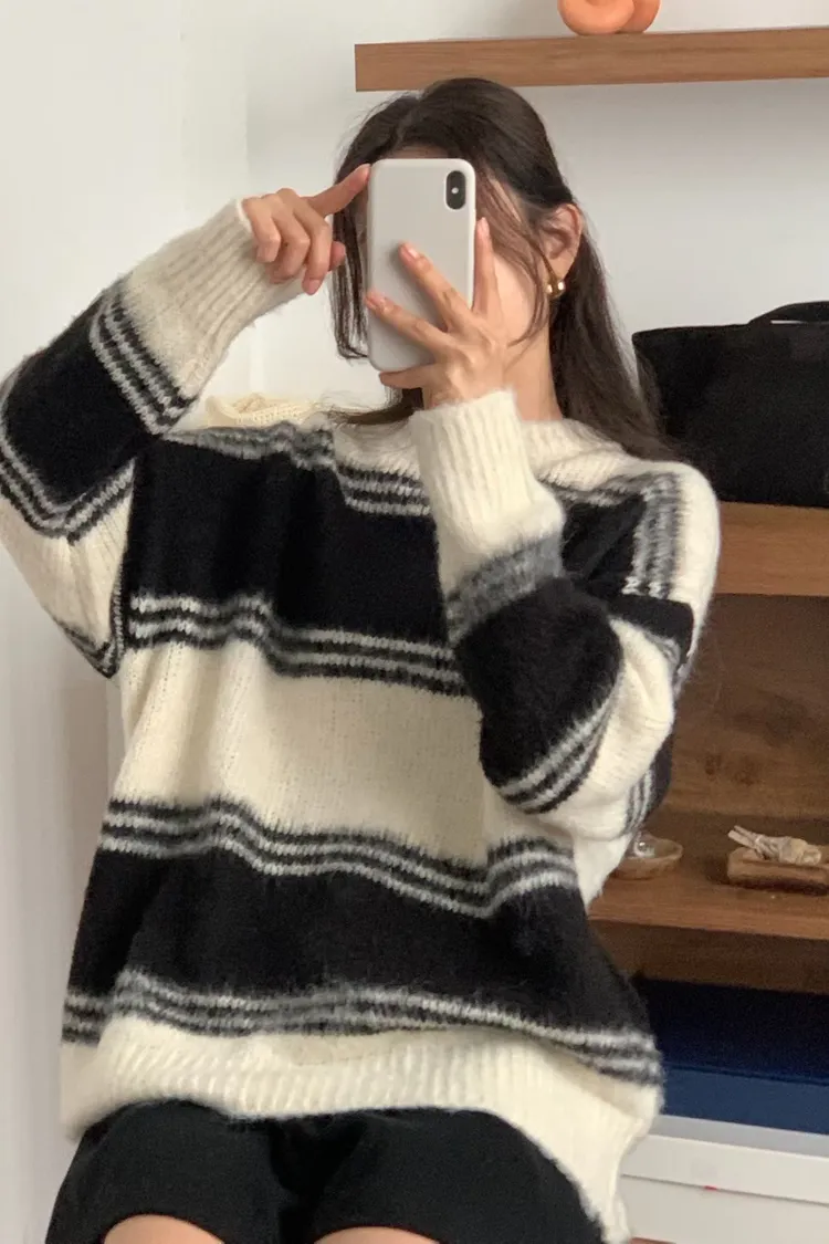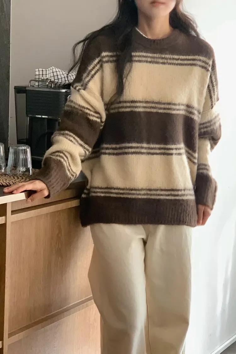 可人長版羊毛條文毛衣