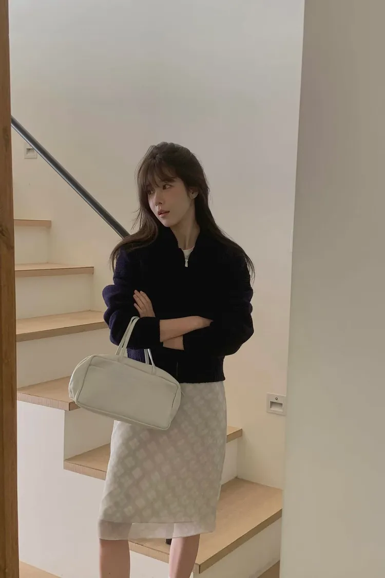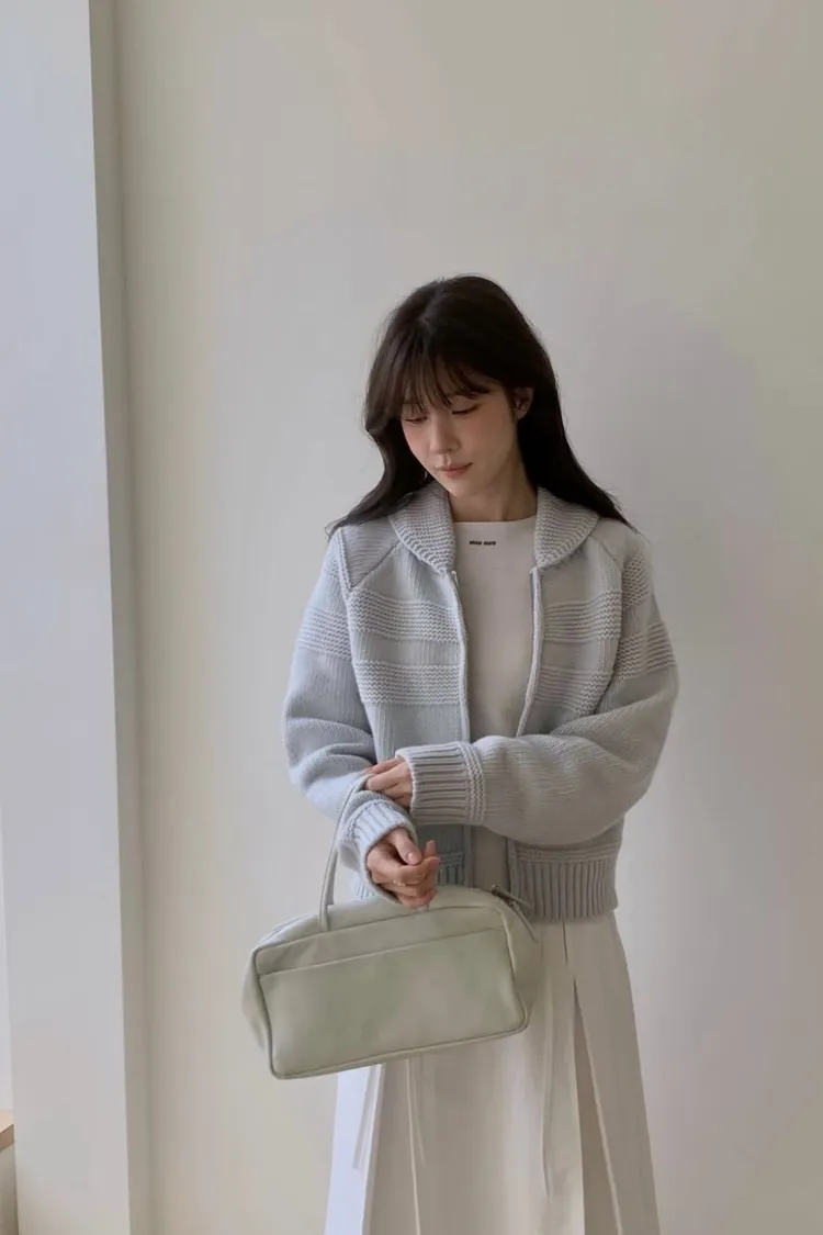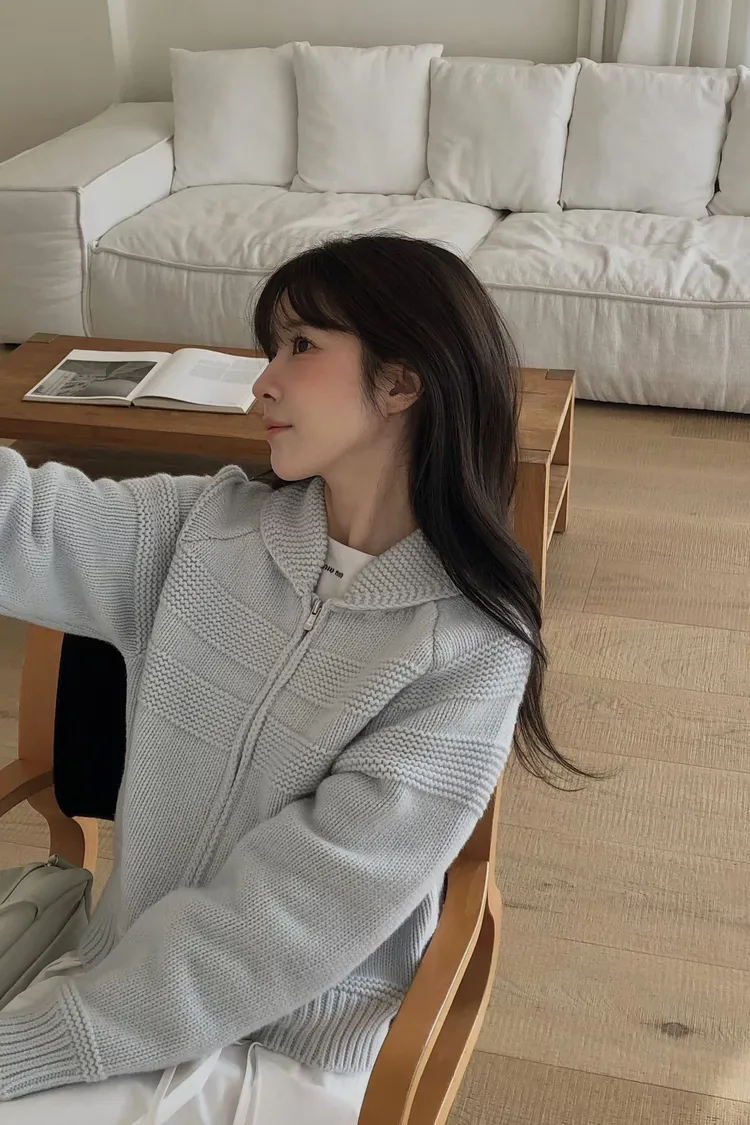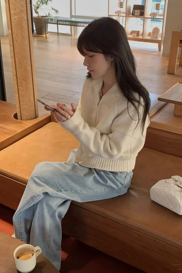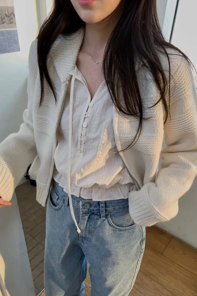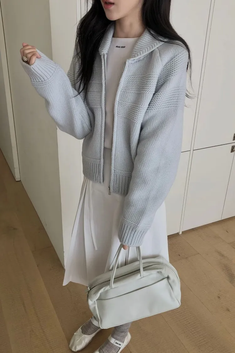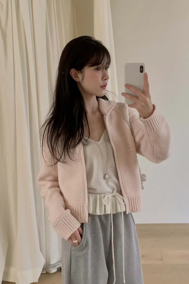 香草小翻領拉鏈針織外套