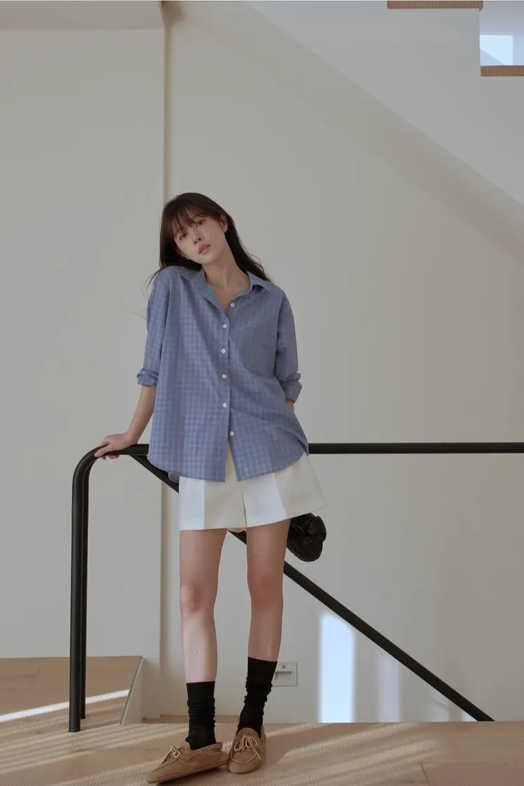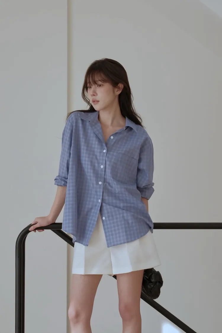 文藝復興經典藍格紋襯衫