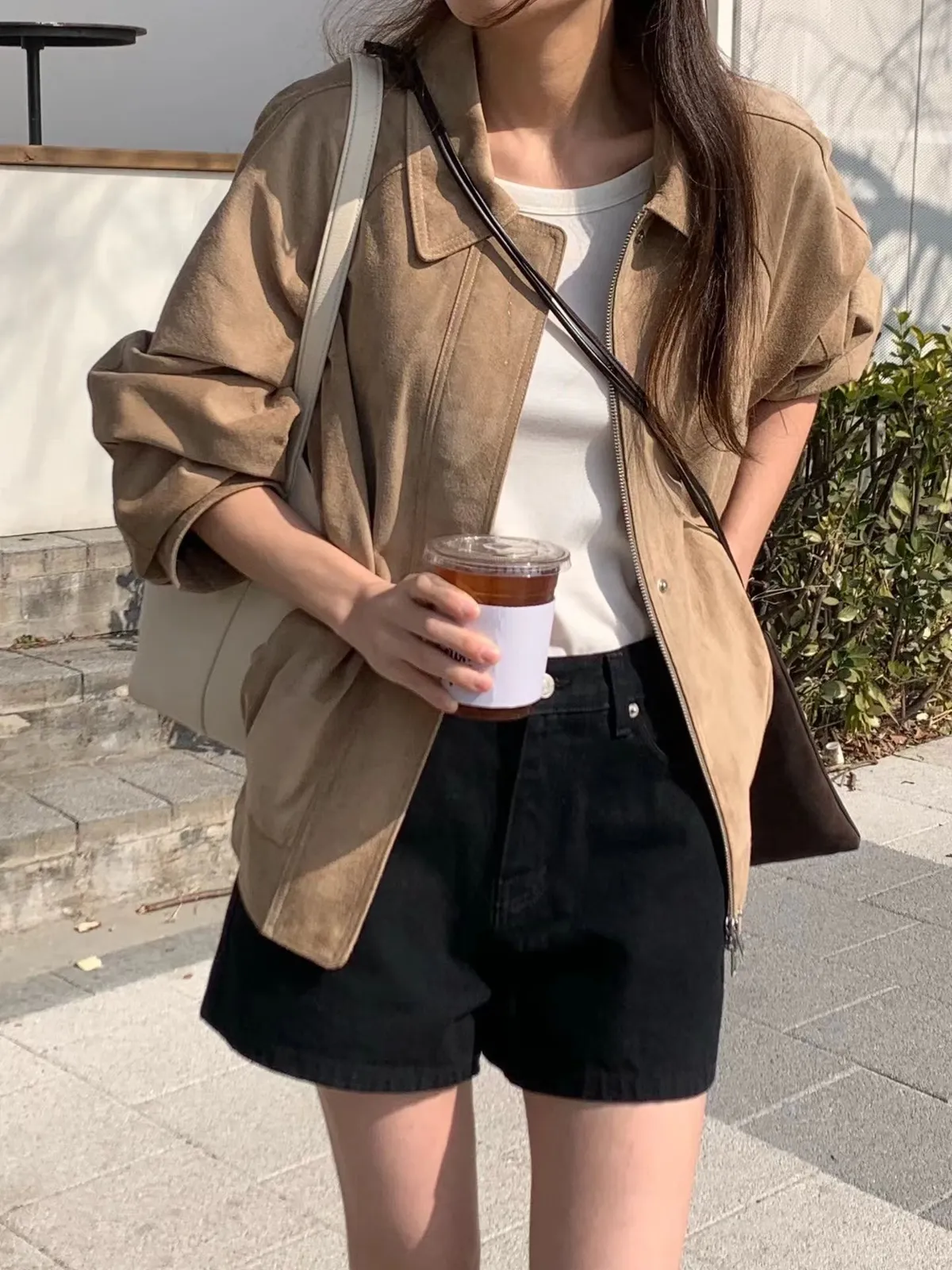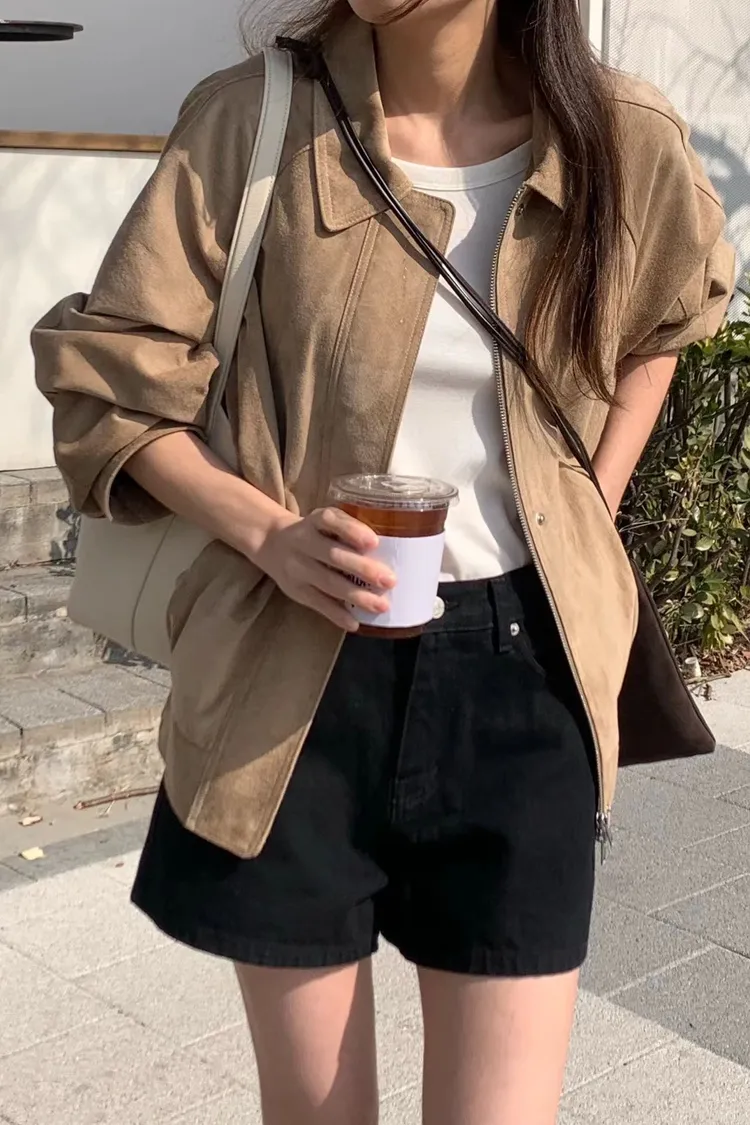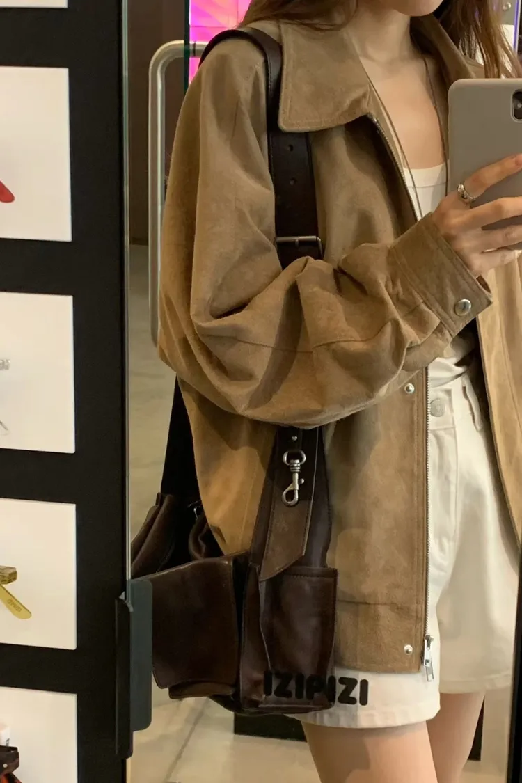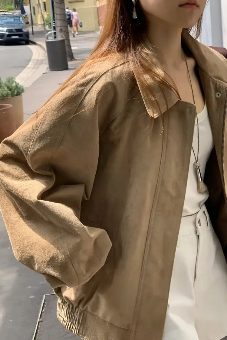 OUNCE 真皮麂皮時髦拉鍊外套