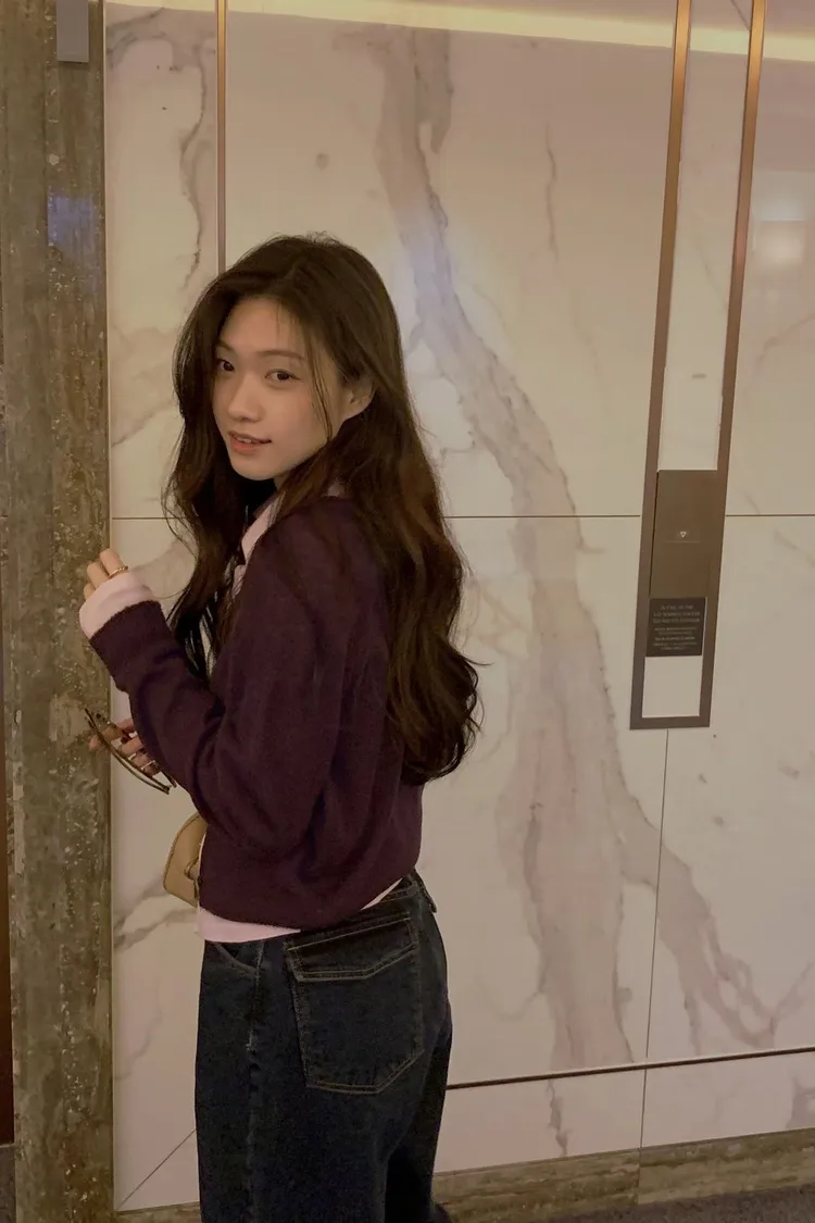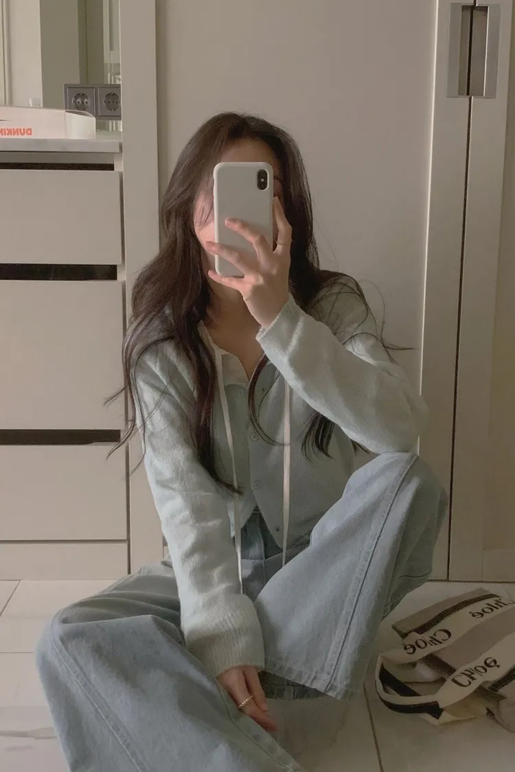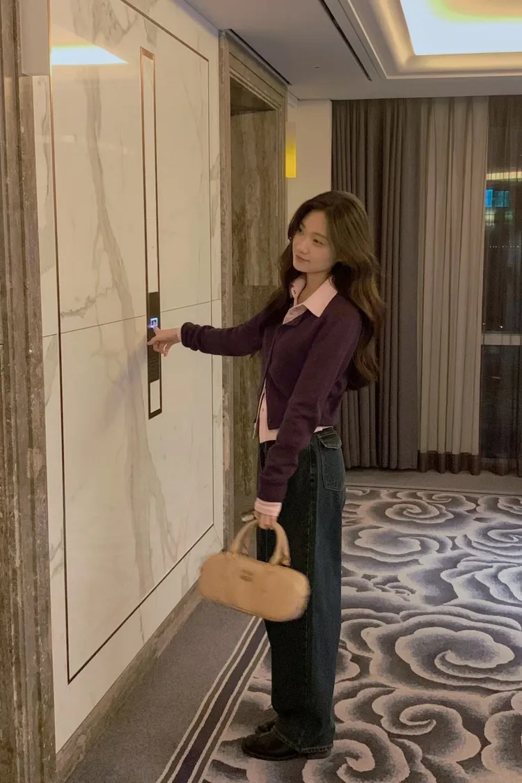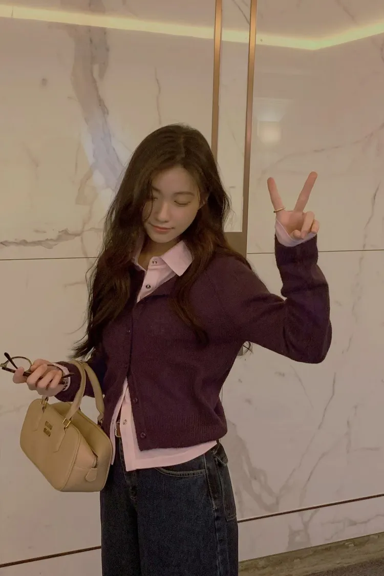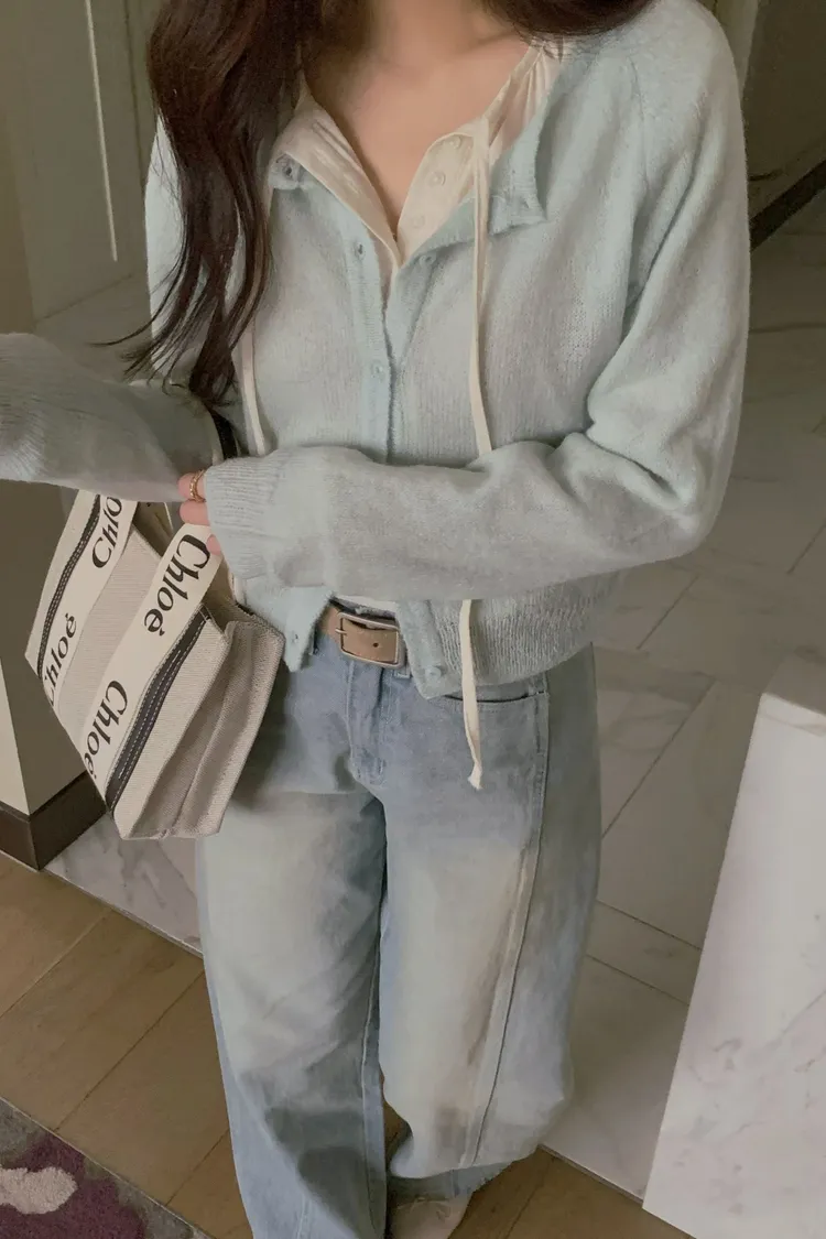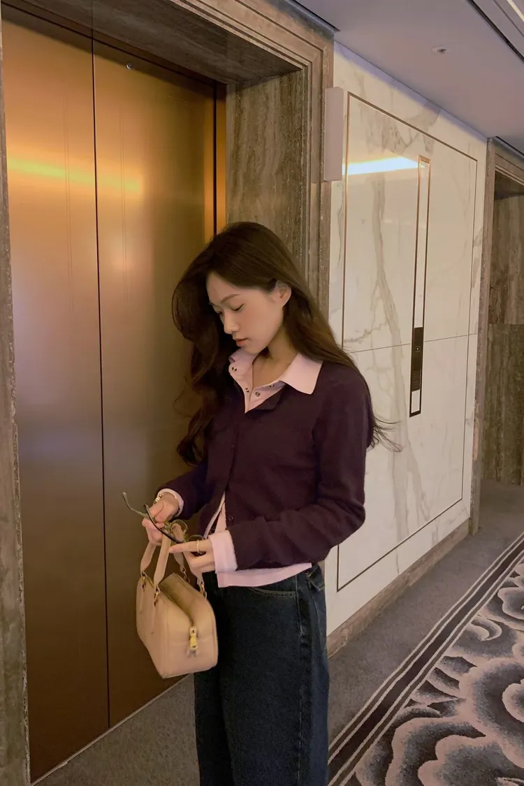 搭配襯衫露出一點領子更韓系感