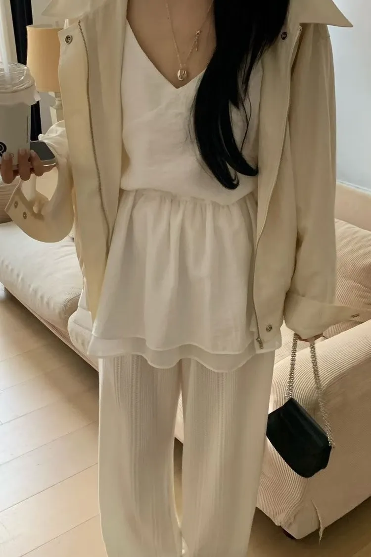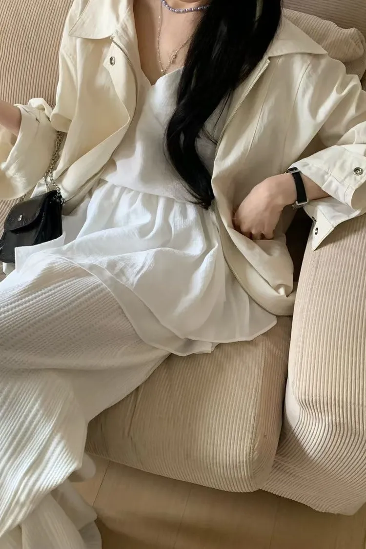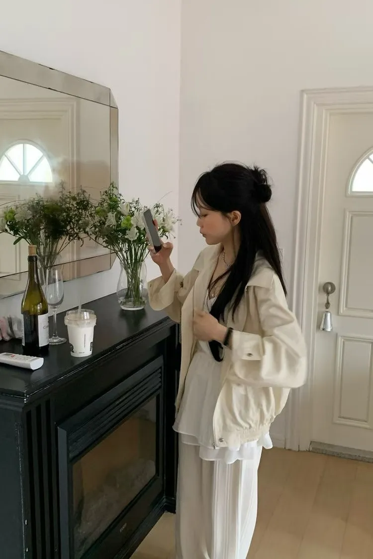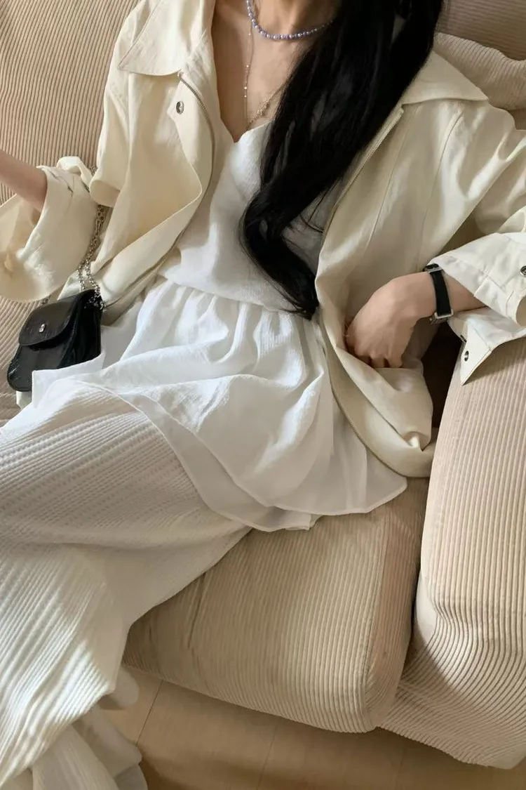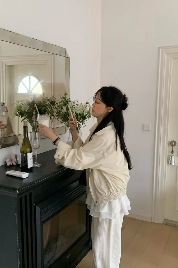 粉嫩鬱金香百搭尼龍拉鍊外套