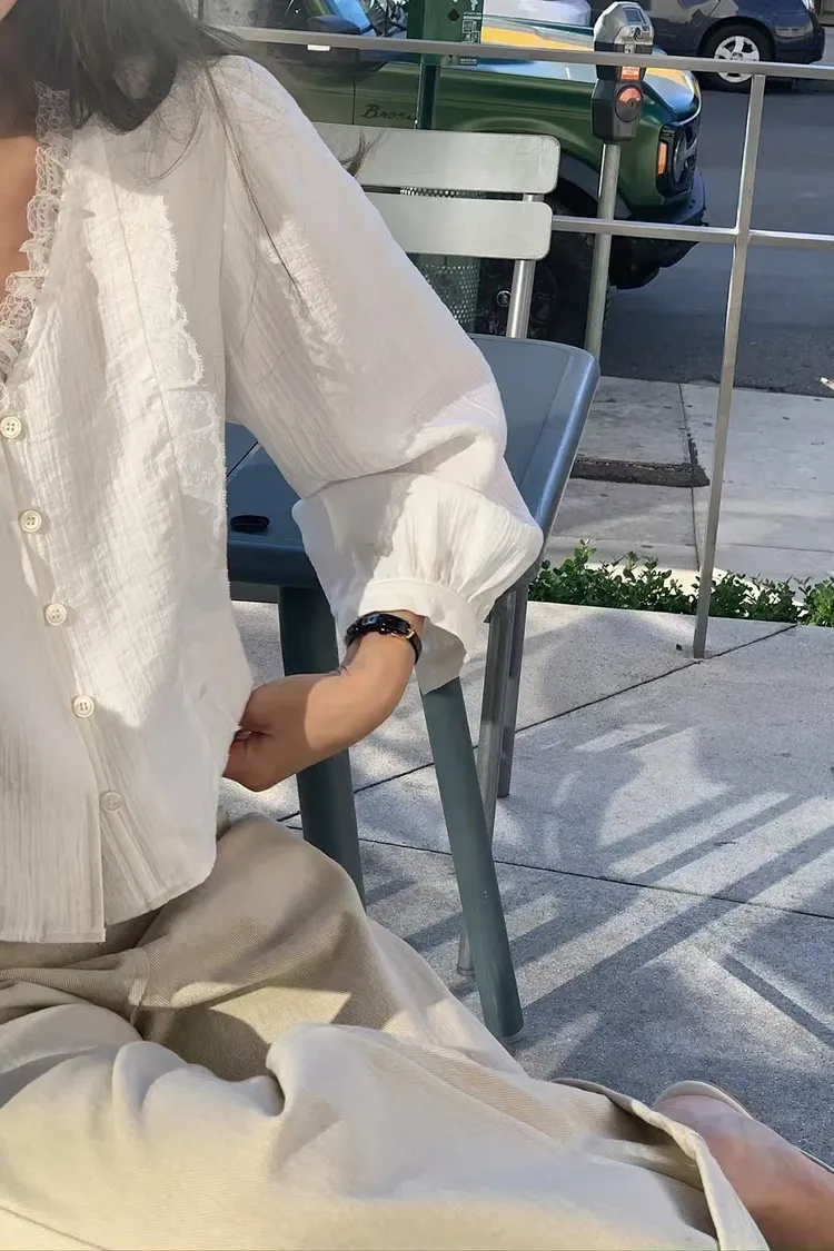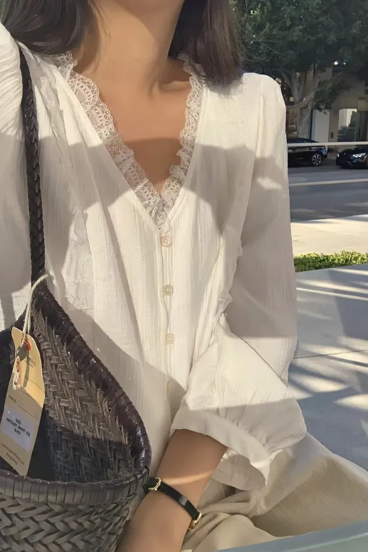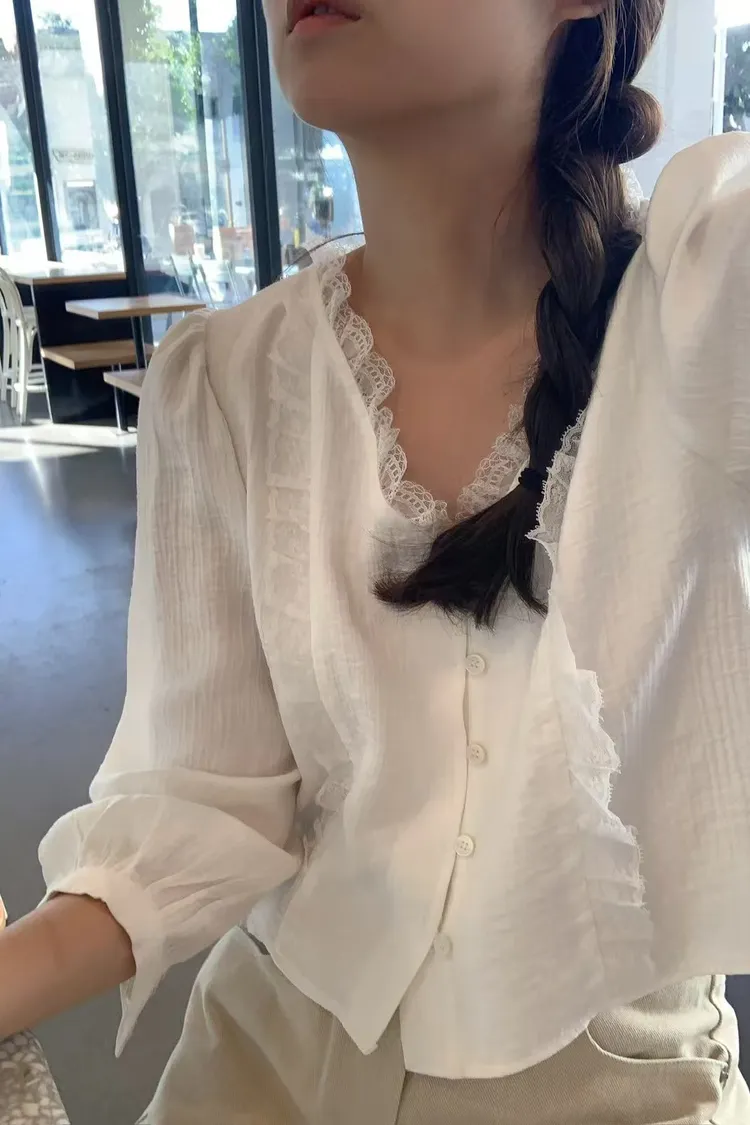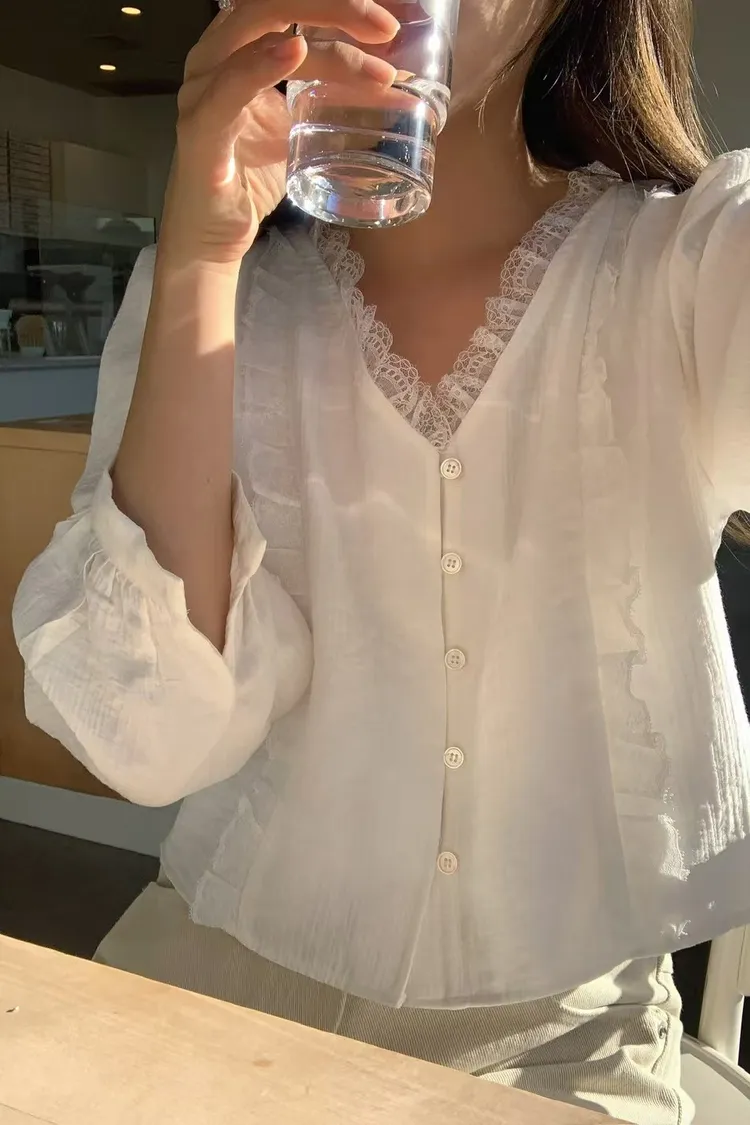 仙女氣息蕾絲拼接襯衫上衣