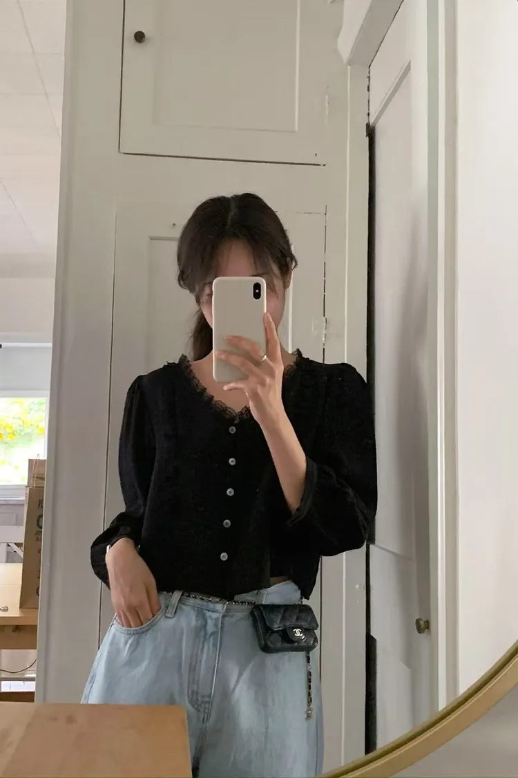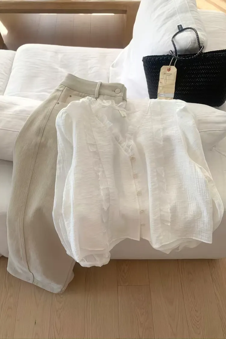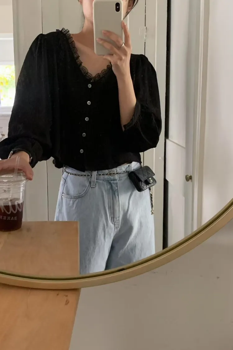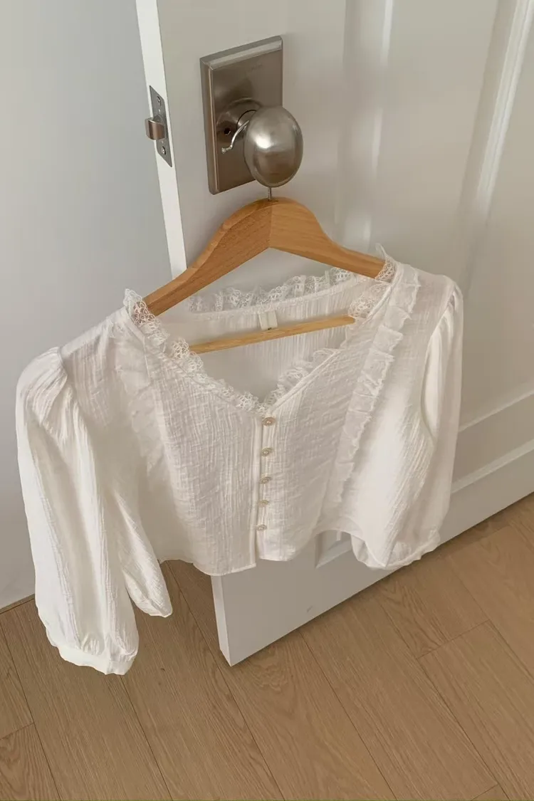 仙女氣息蕾絲拼接襯衫上衣