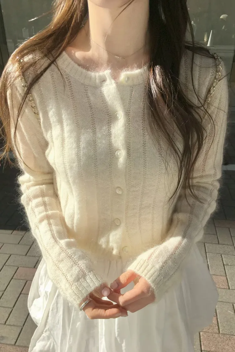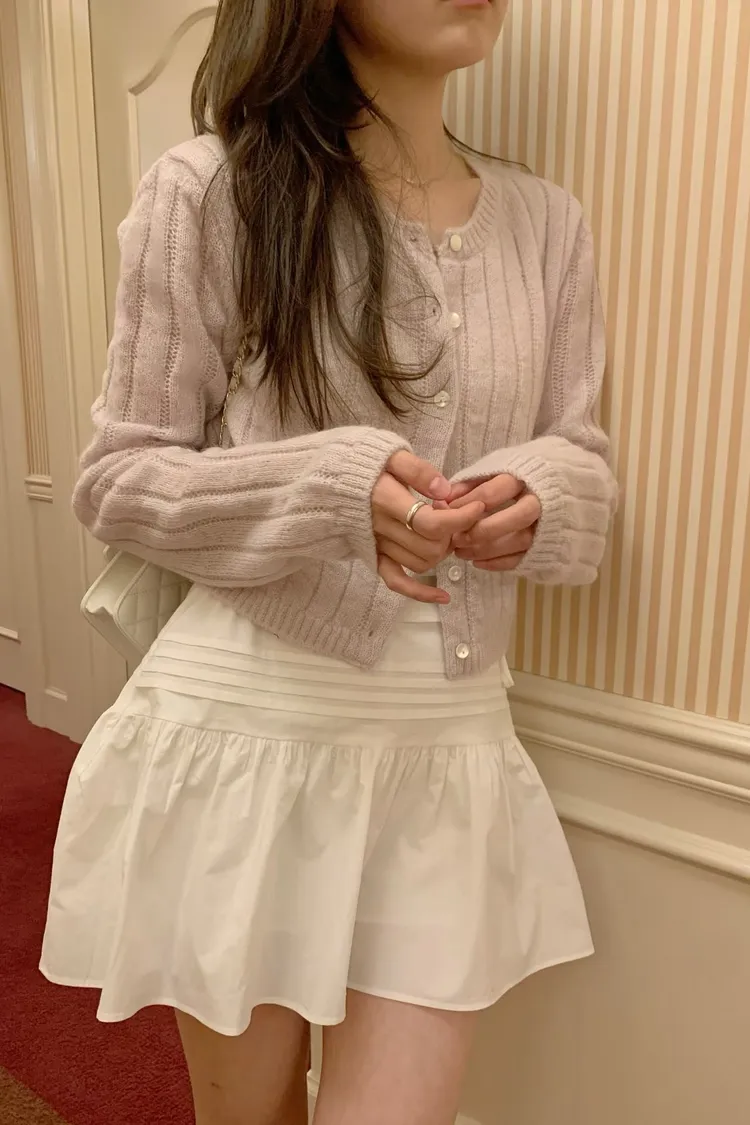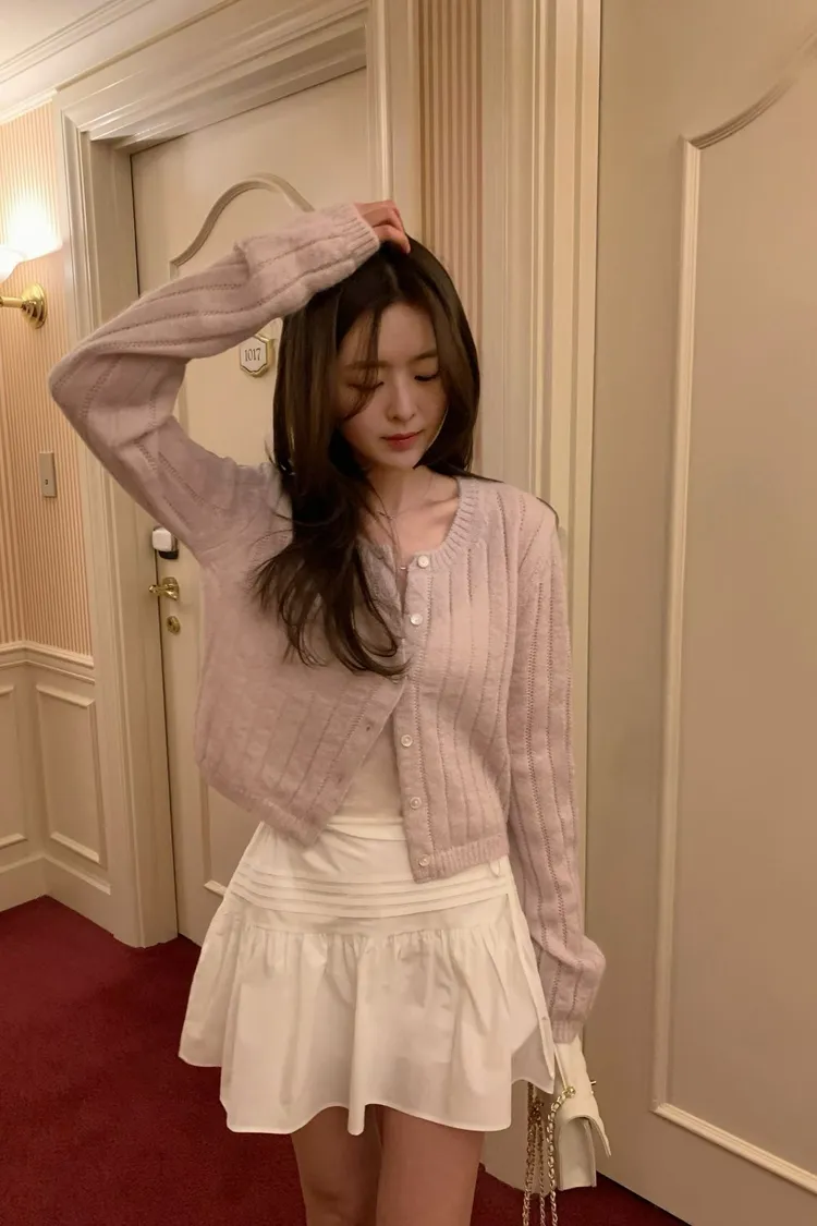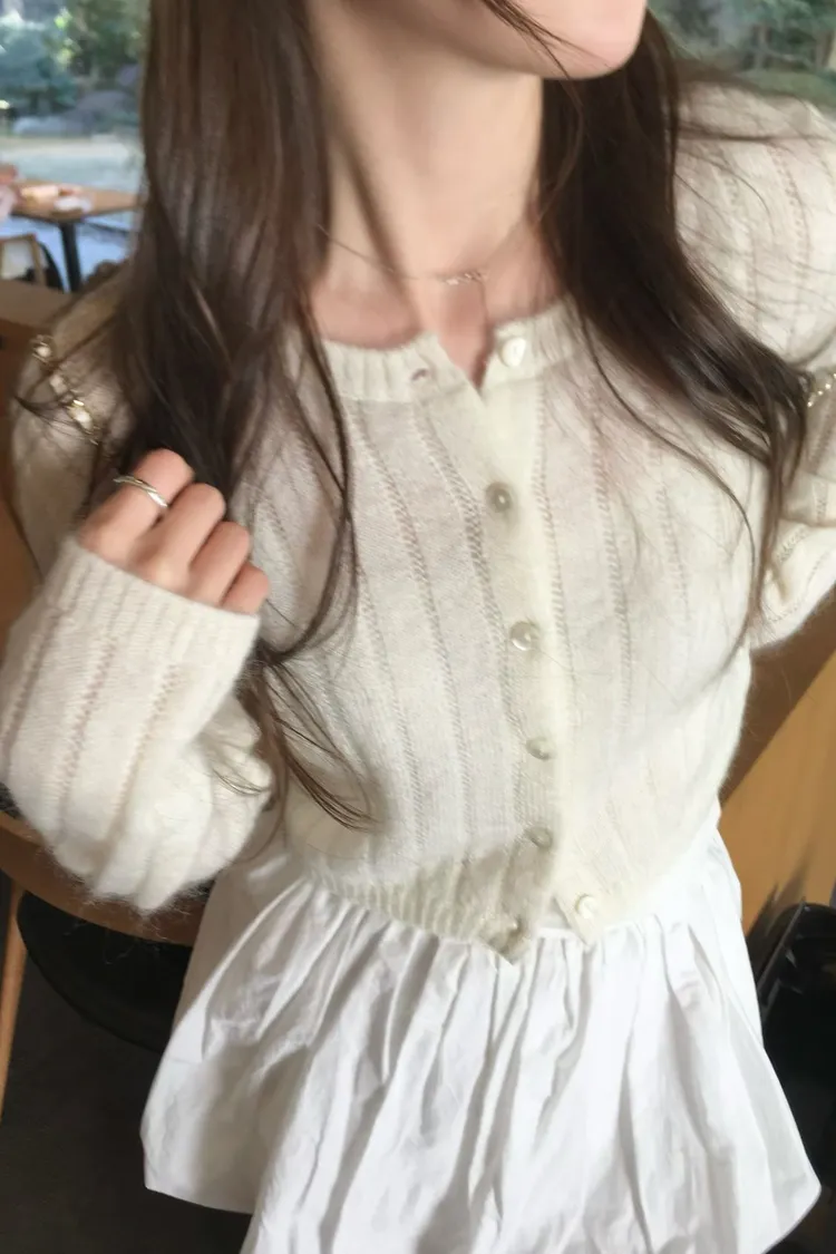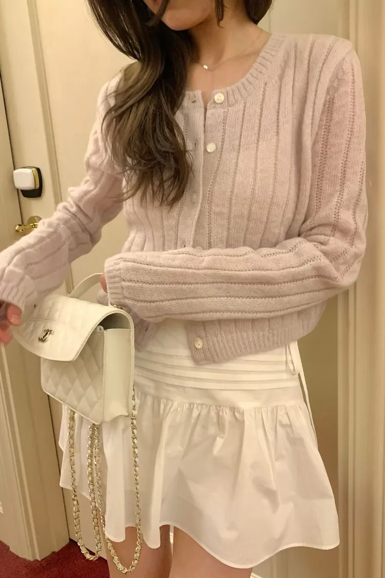 千金感細緻直坑條針織罩衫
