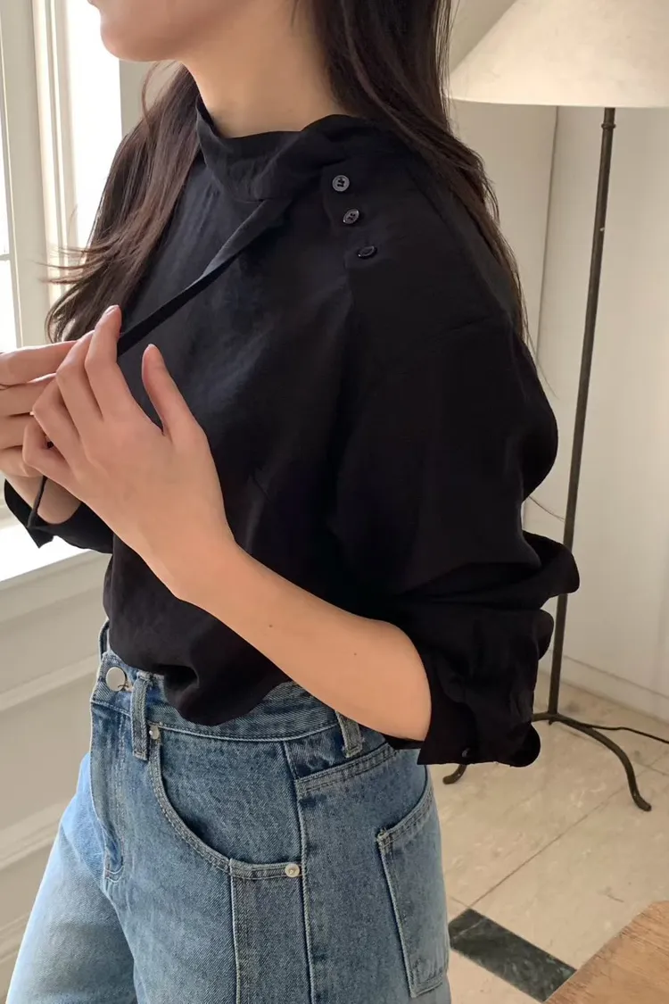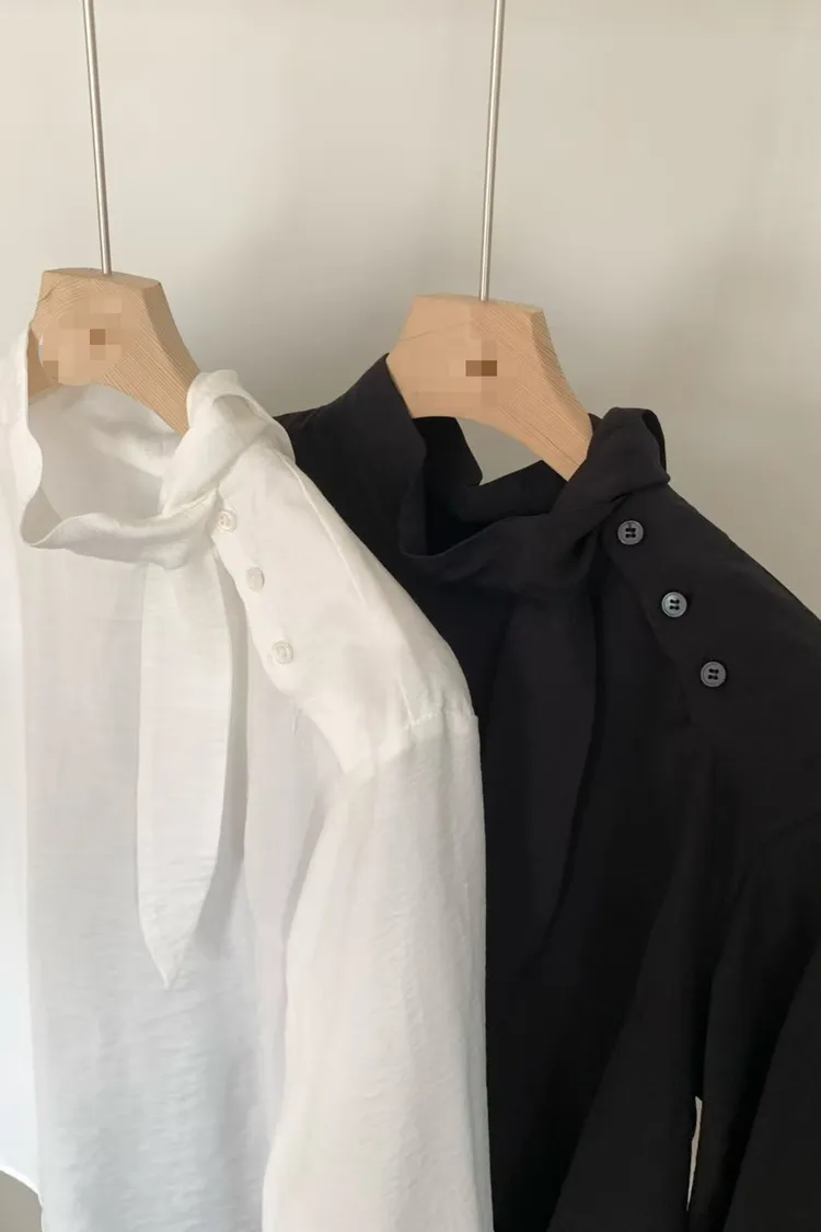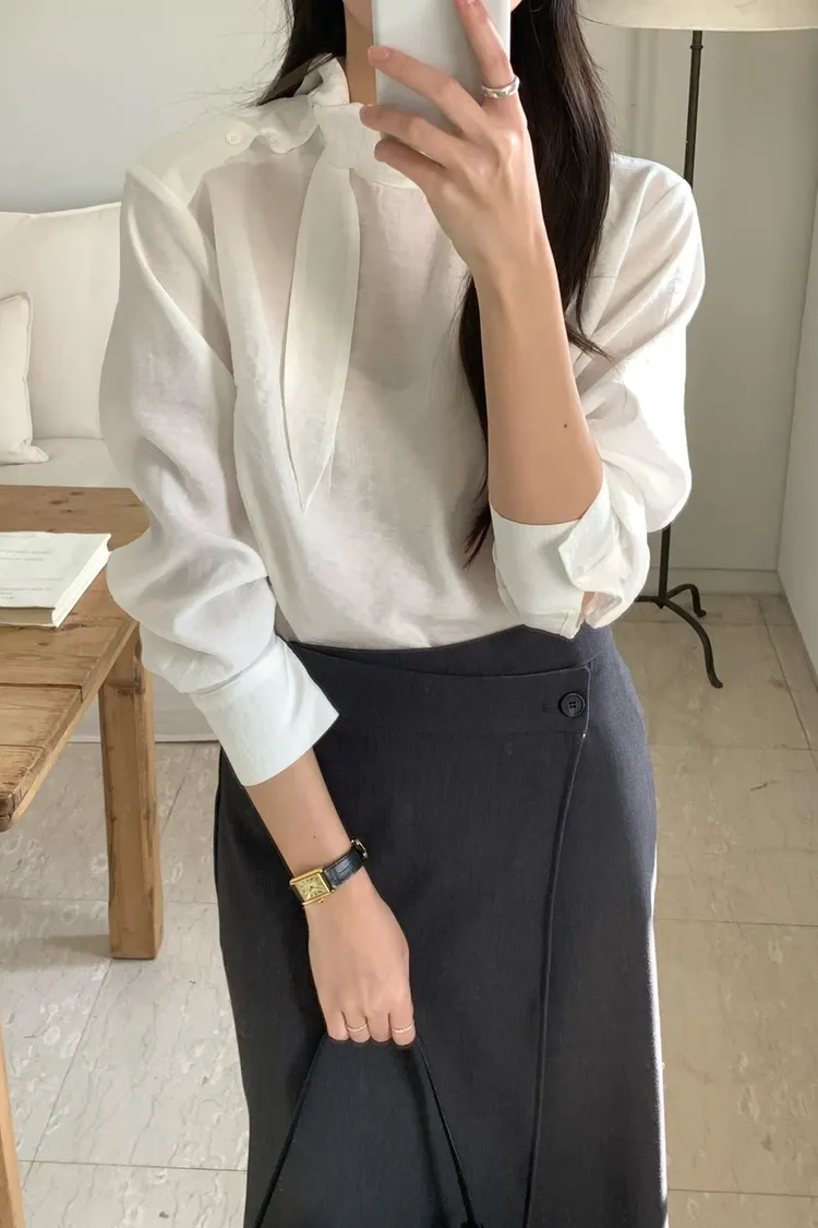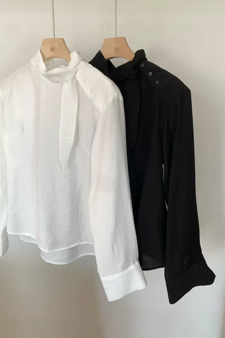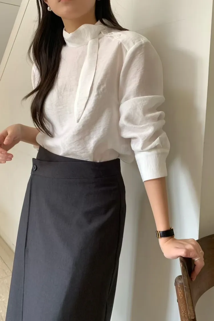 優雅側領帶造型綁帶上衣