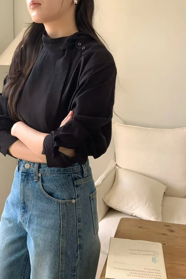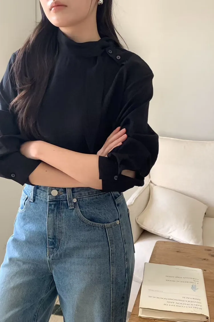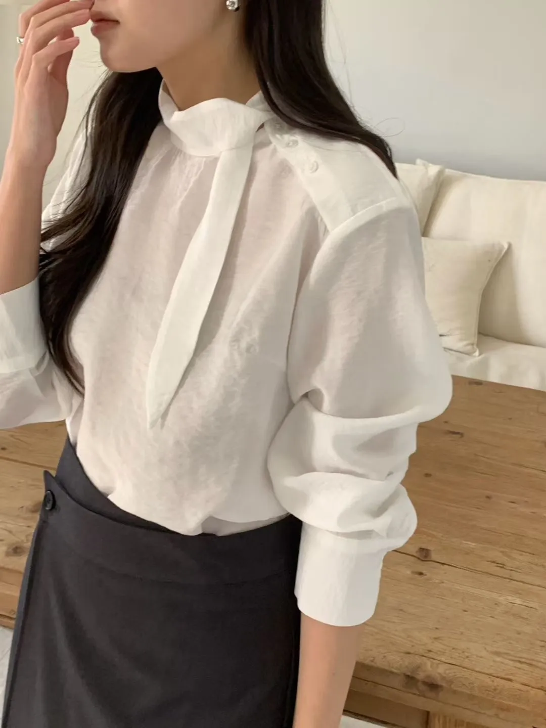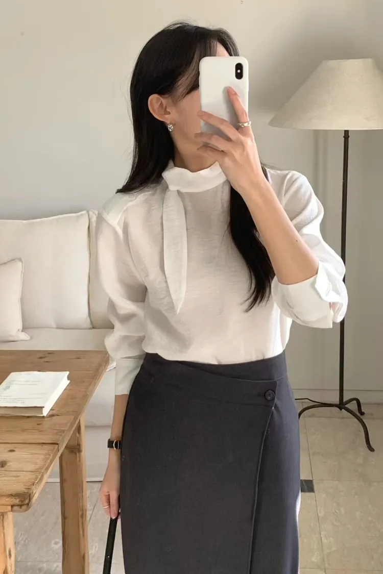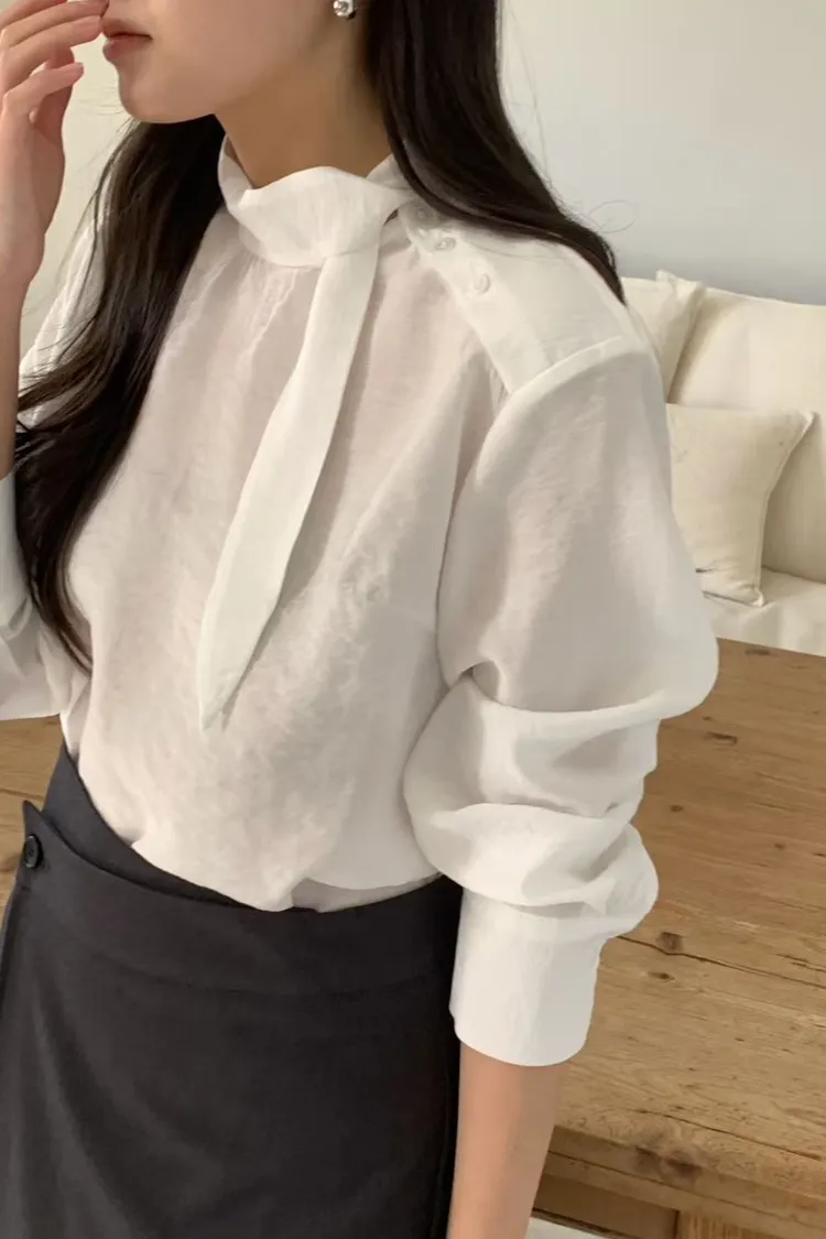 優雅側領帶造型綁帶上衣