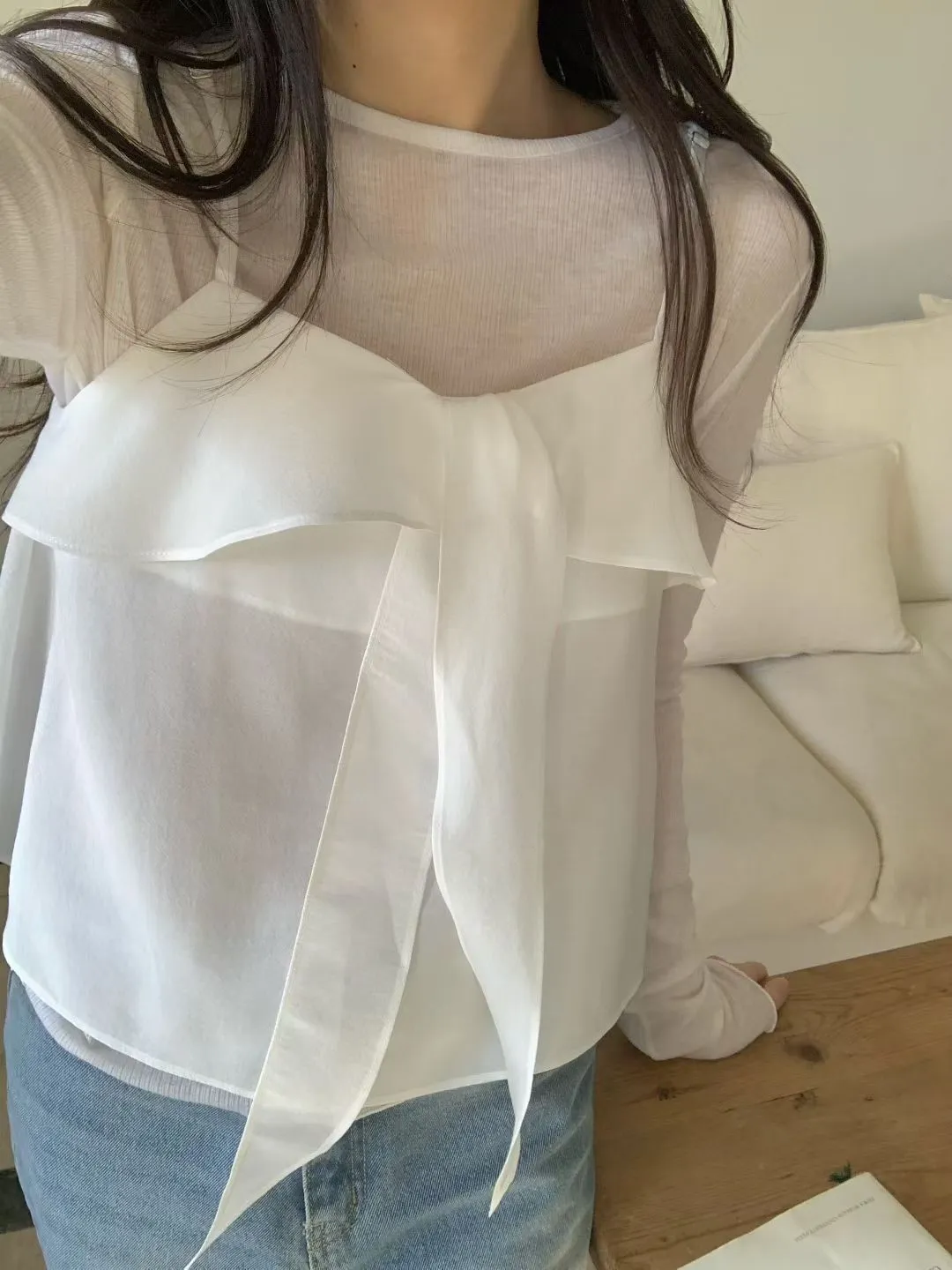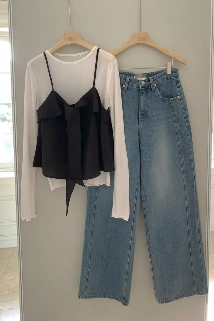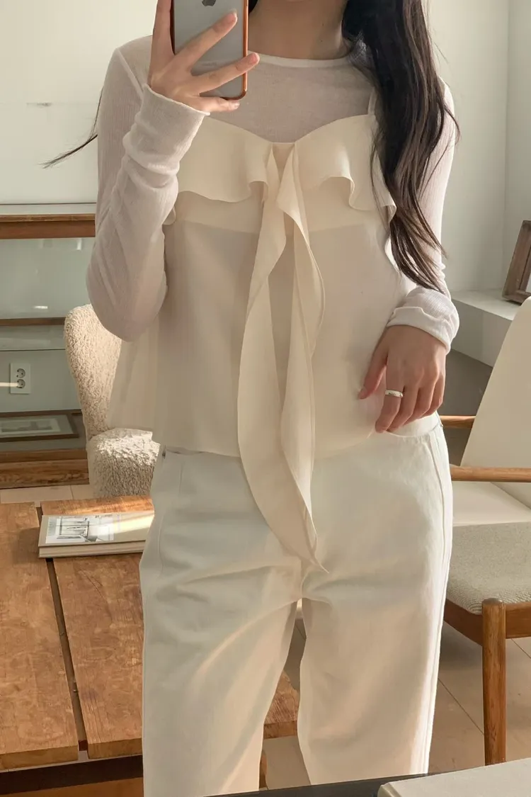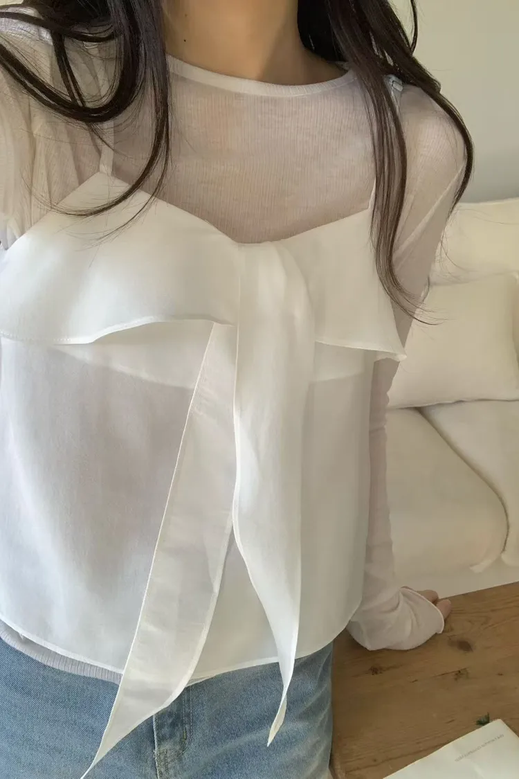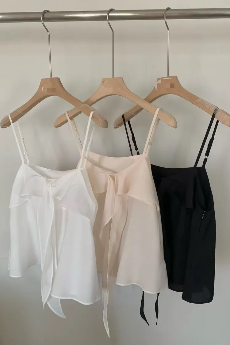 浪漫小女人荷葉邊綁帶細肩帶背心