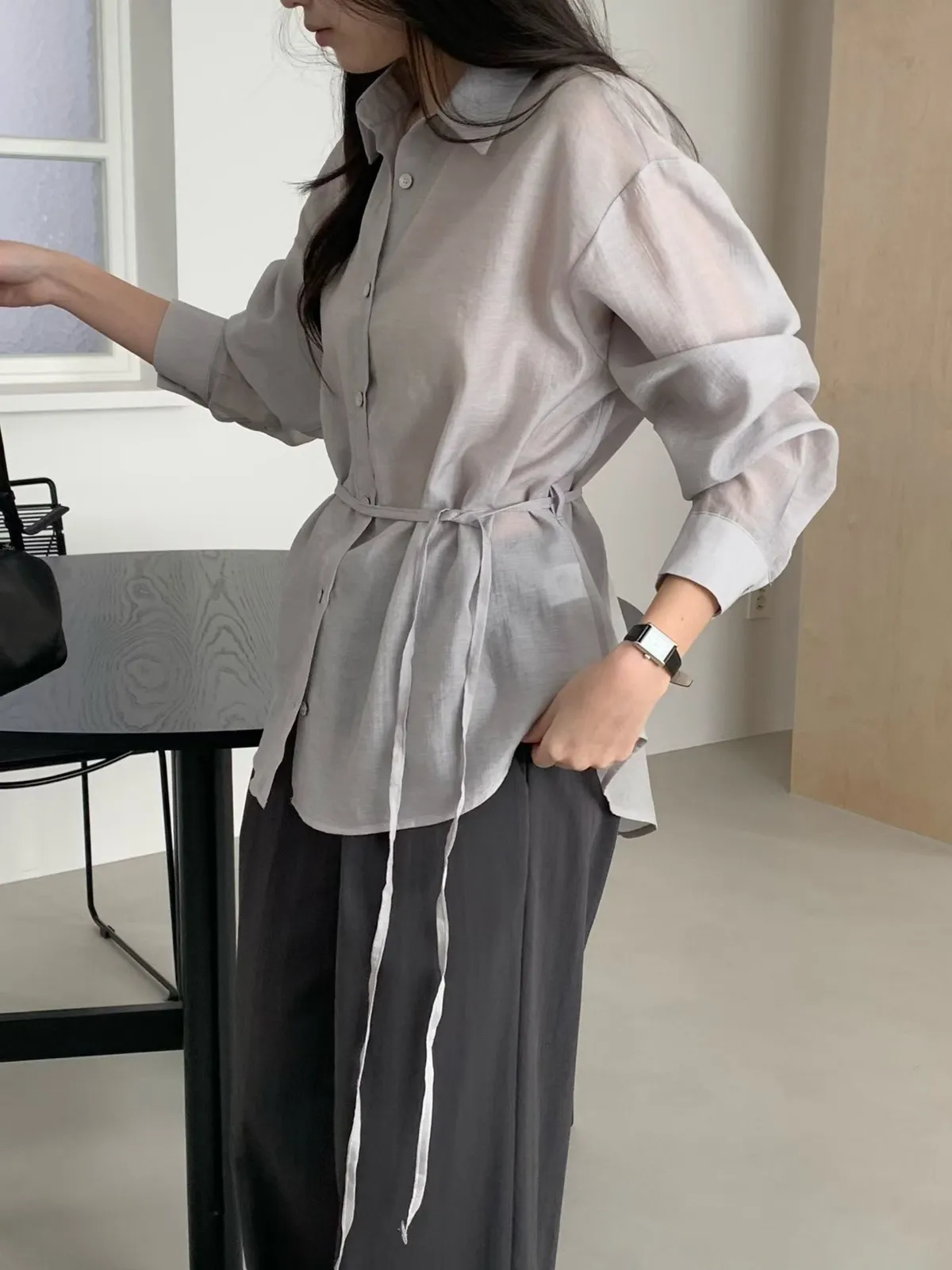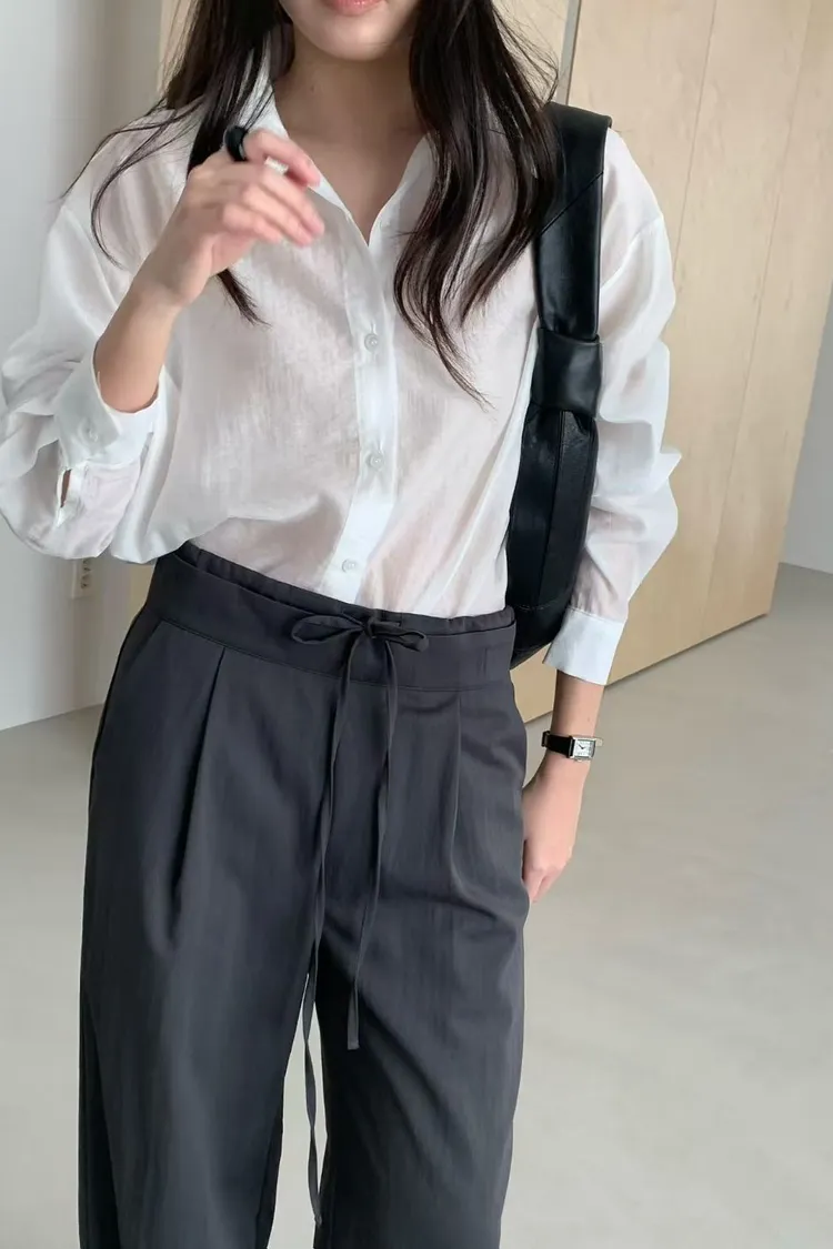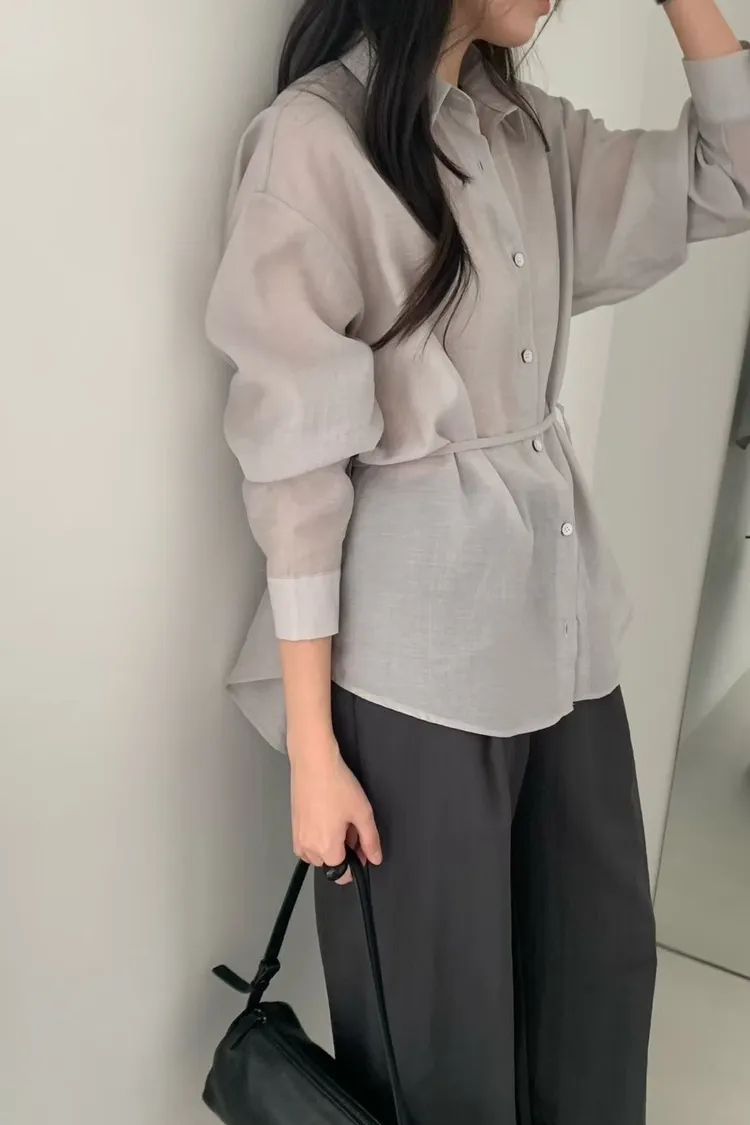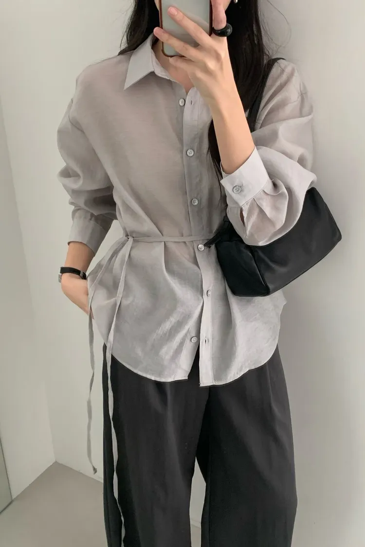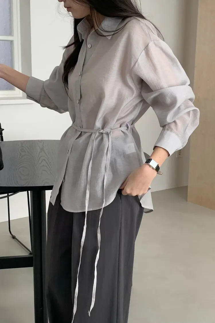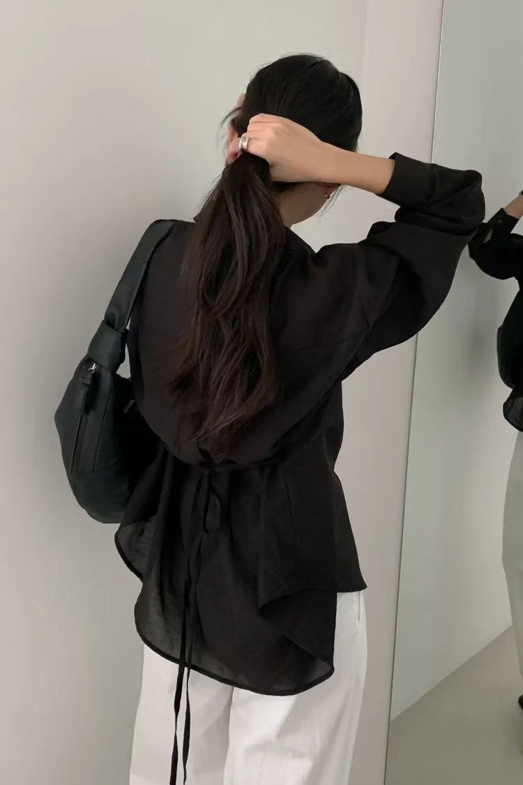 桔梗優雅綁帶顯瘦襯衫