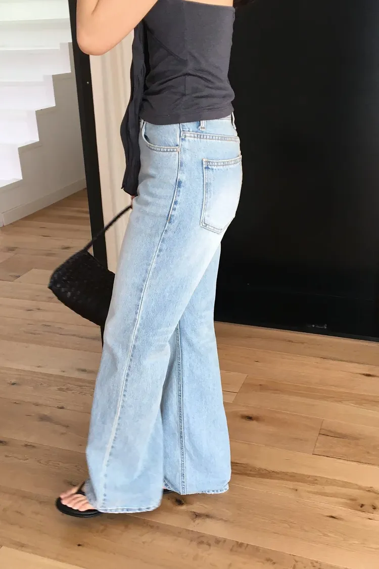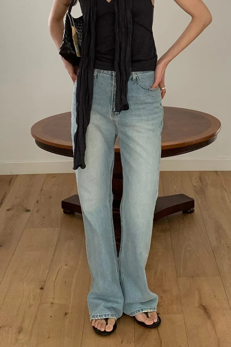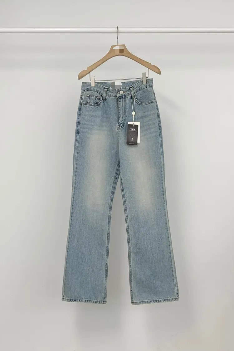 夏日刷白微喇叭牛仔長褲