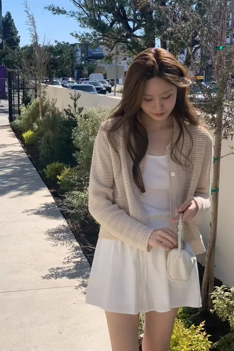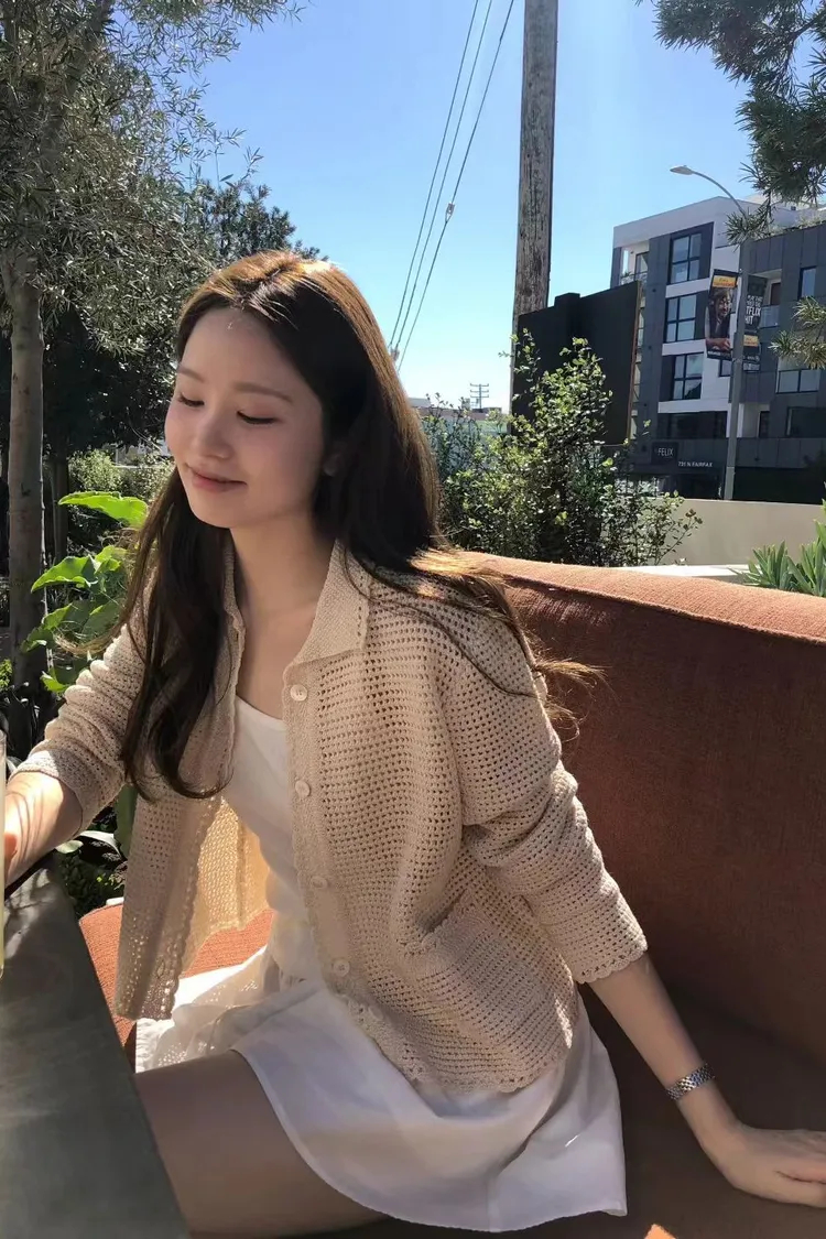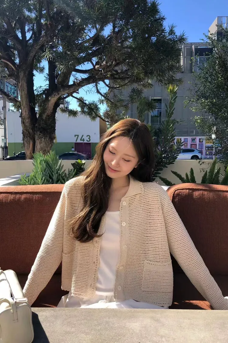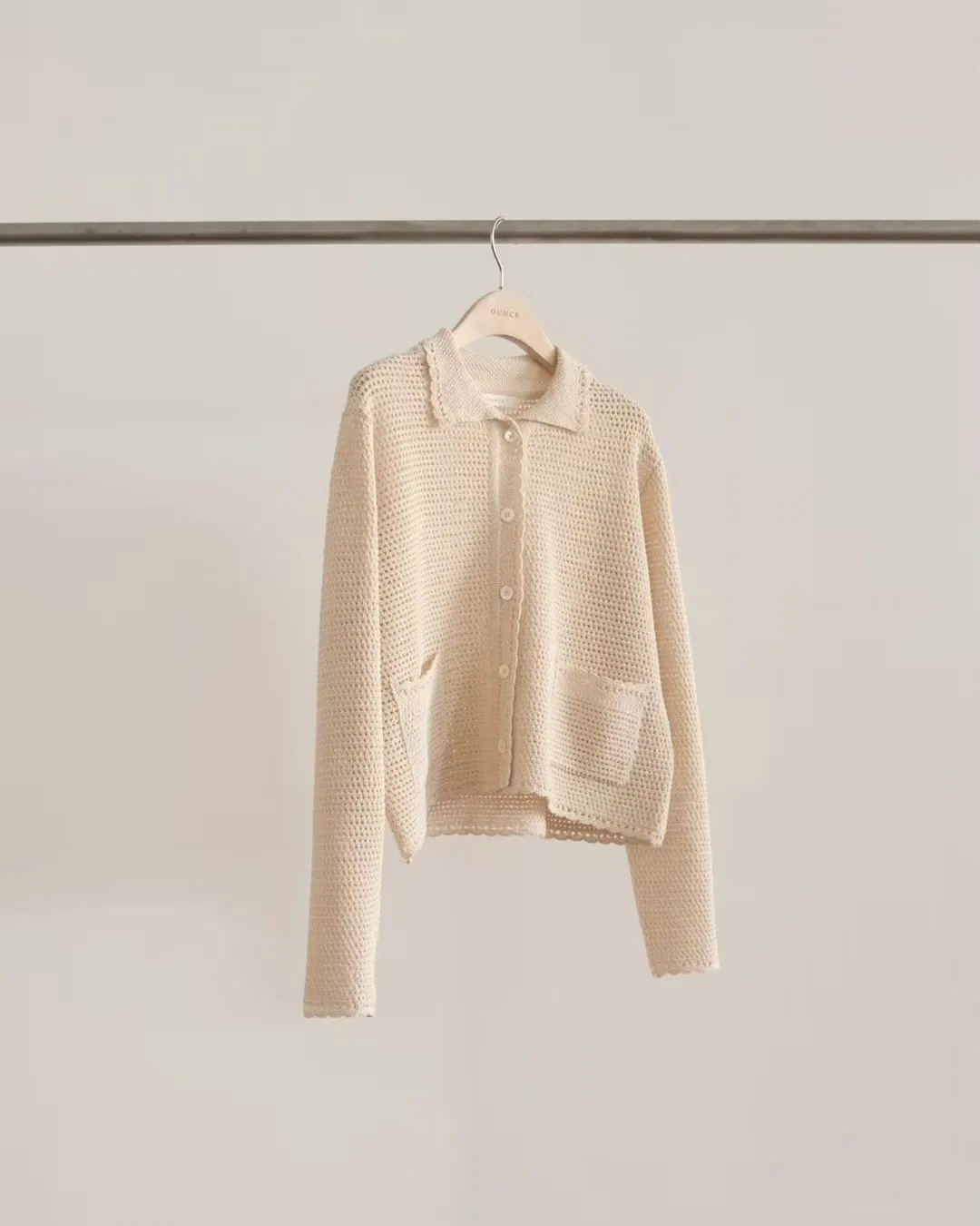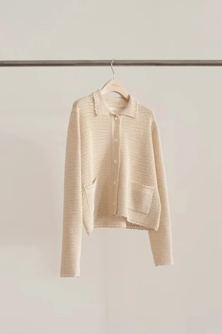 OUNCE 淡雅雙口袋翻領針織罩衫