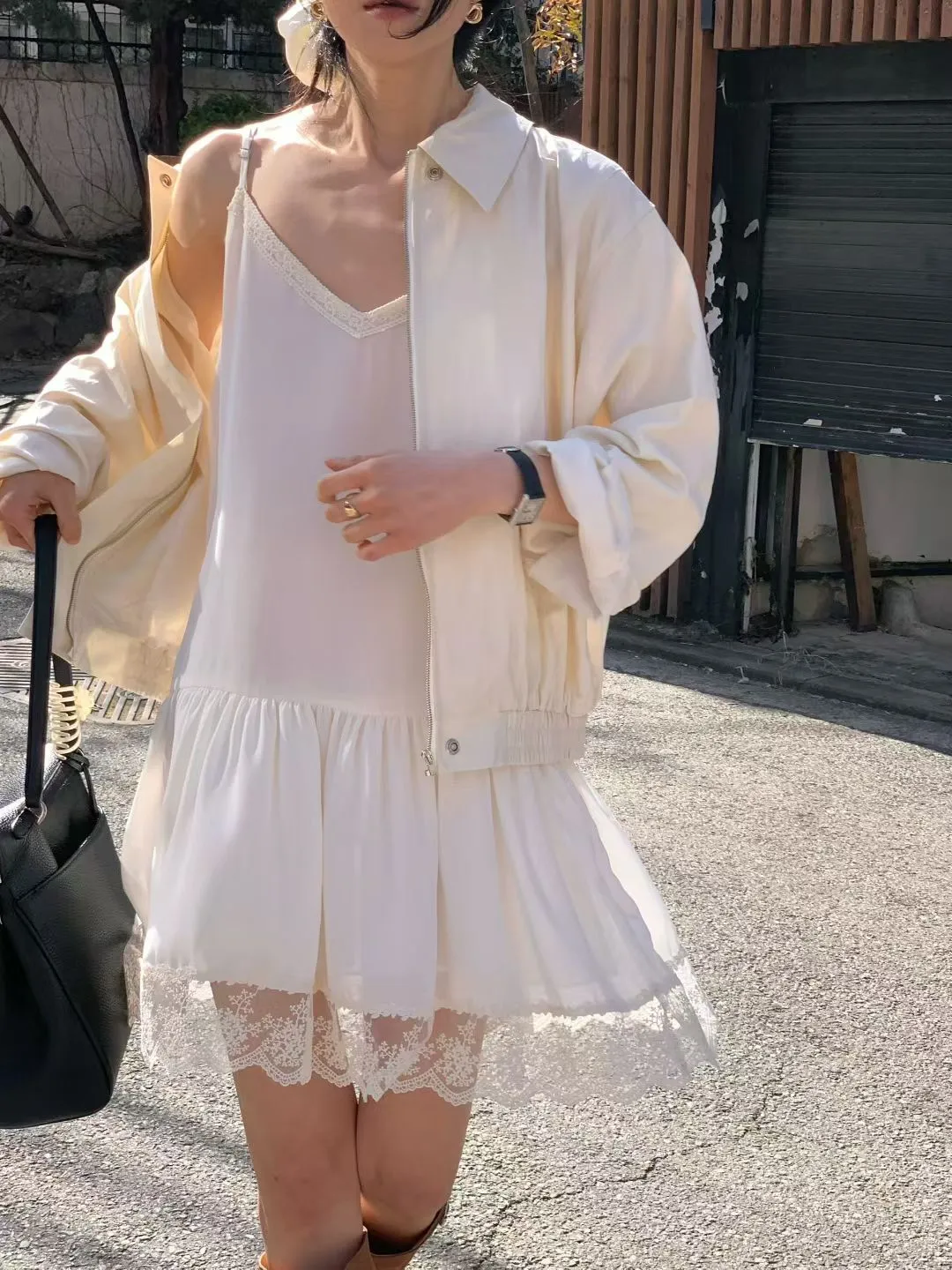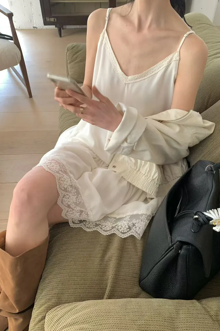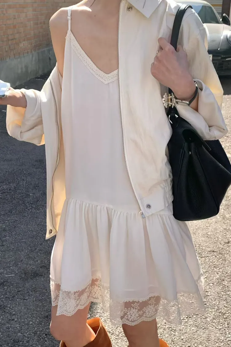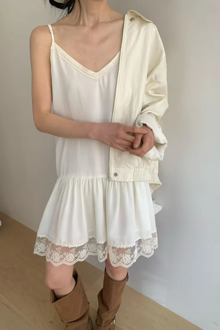 【闆娘推薦】蕾絲細肩帶可調節滾邊洋裝