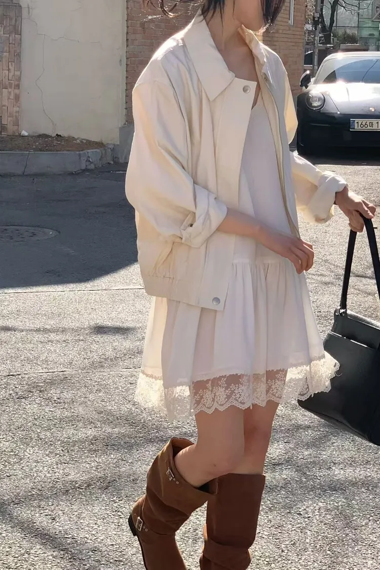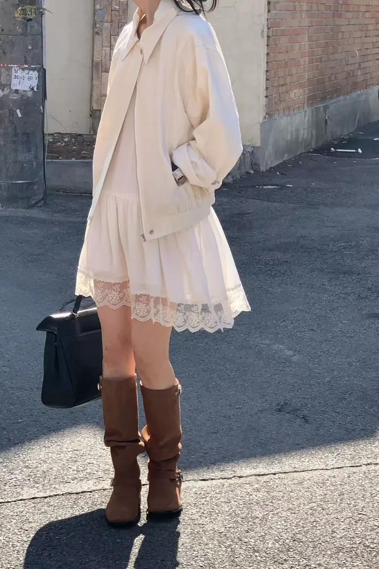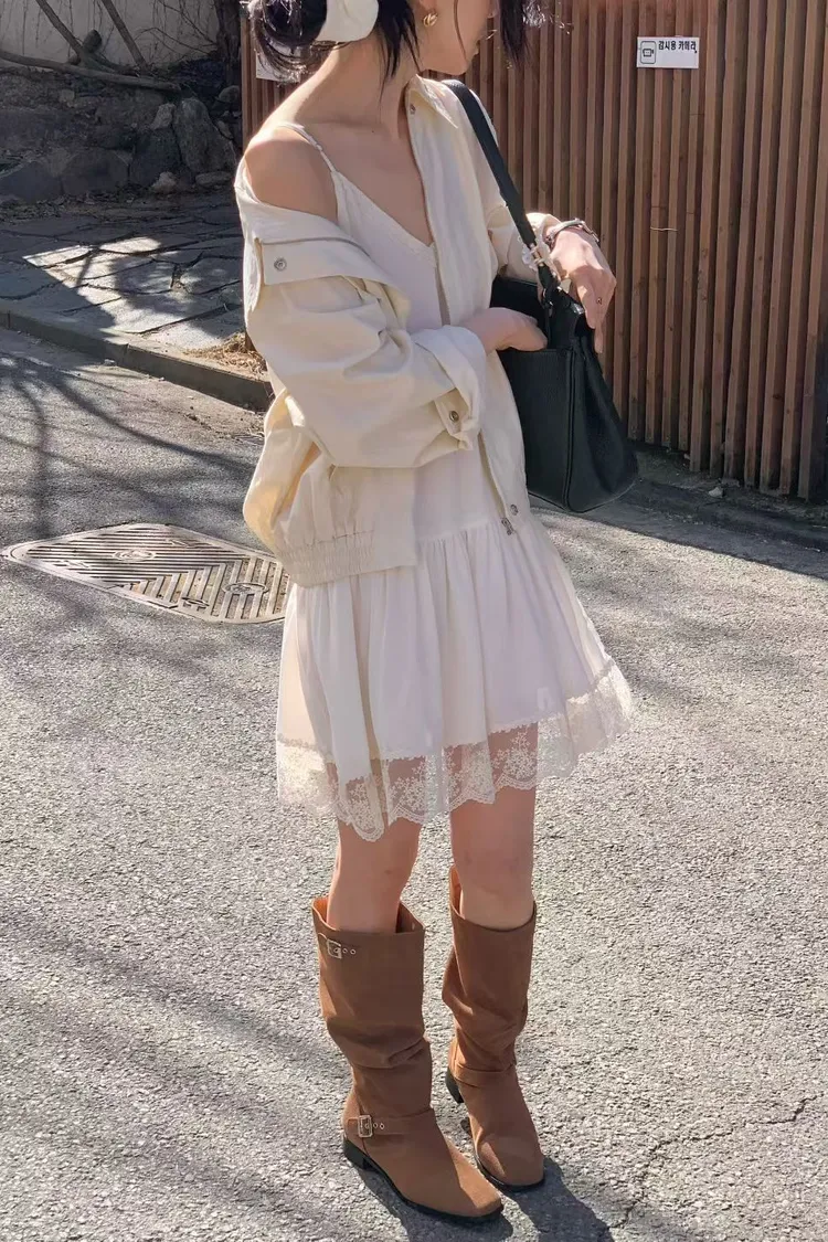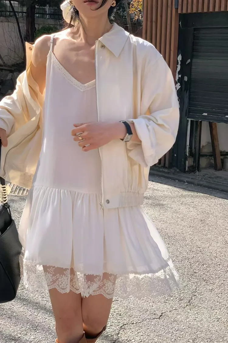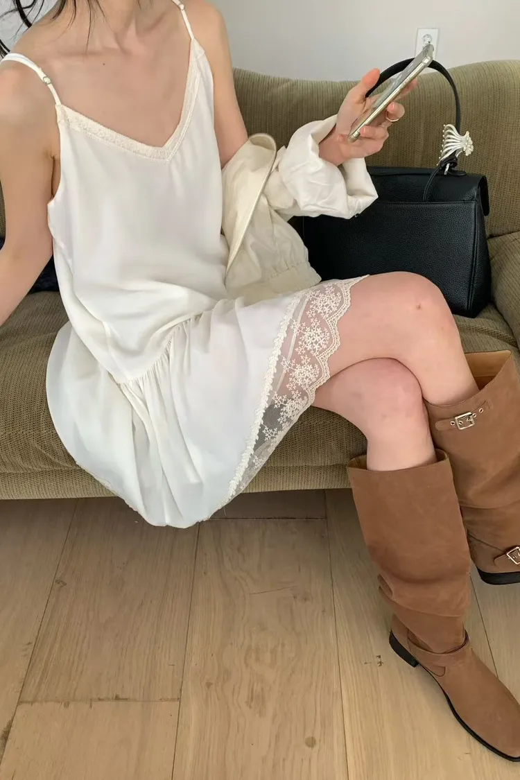 【闆娘推薦】蕾絲細肩帶可調節滾邊洋裝