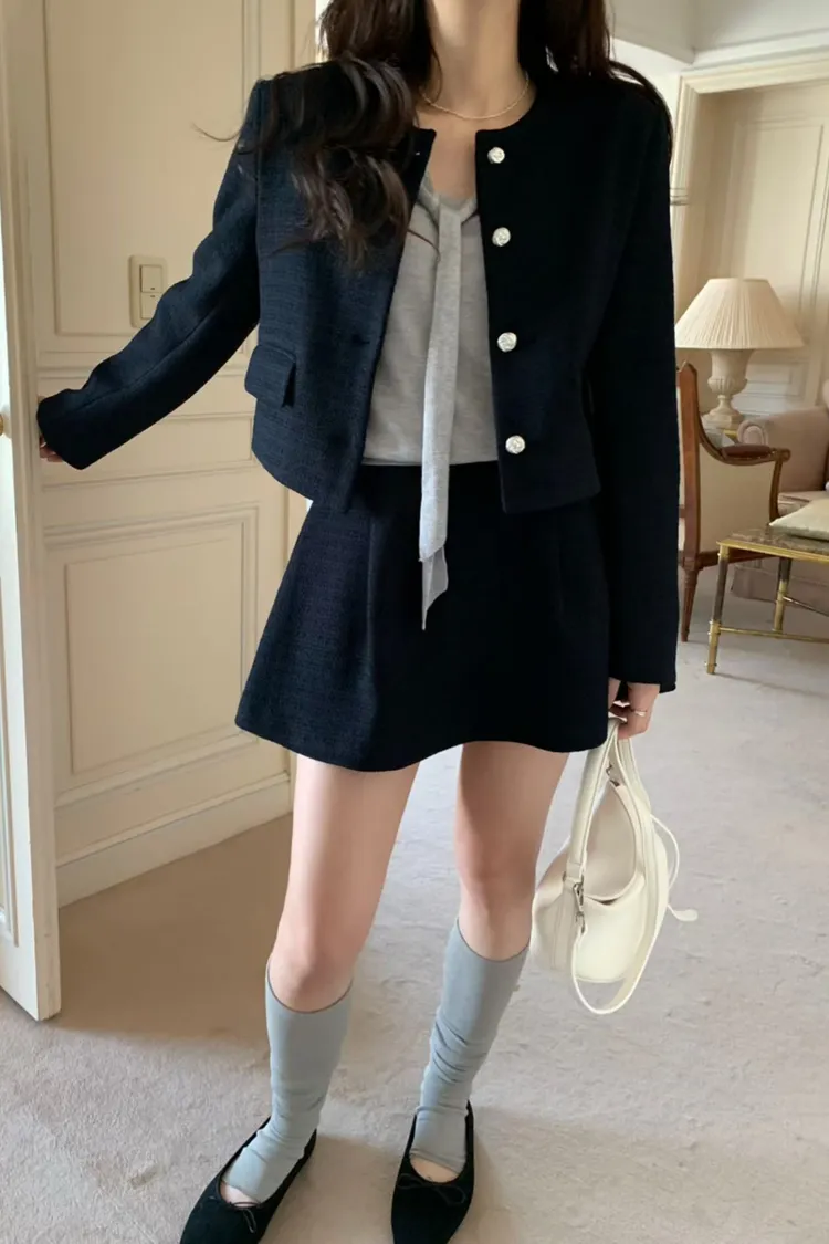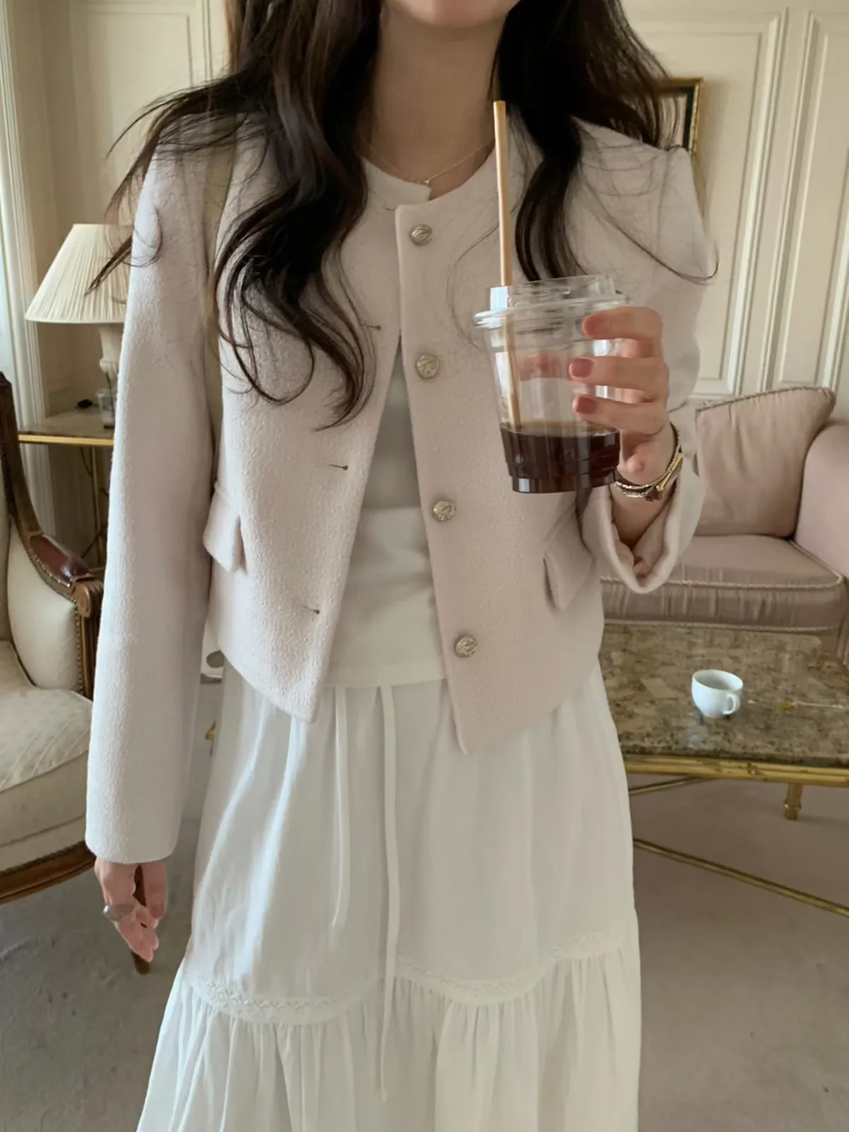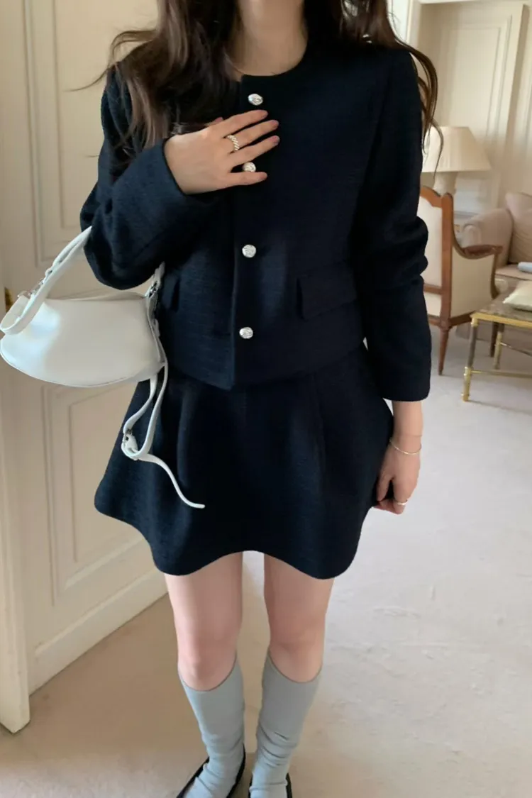 【闆娘推薦】溫柔感玫瑰釦精緻小香套裝(外套)