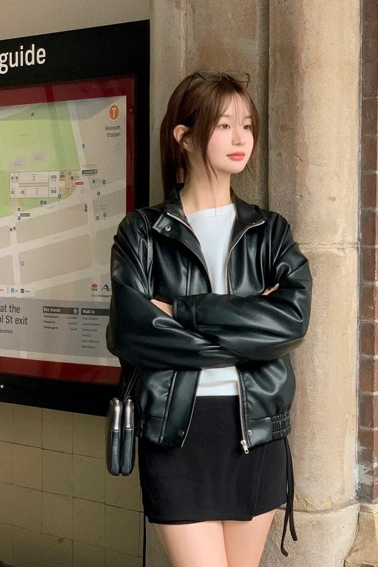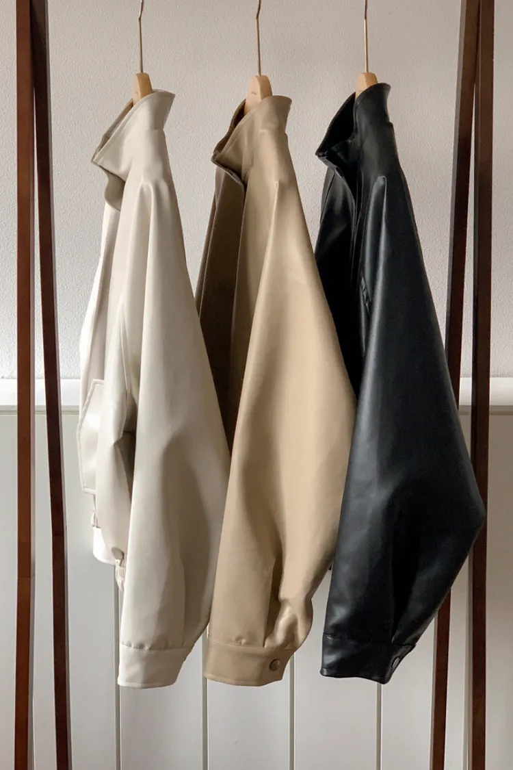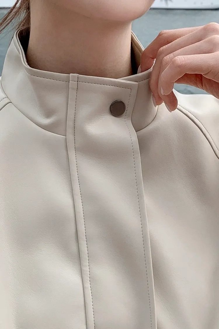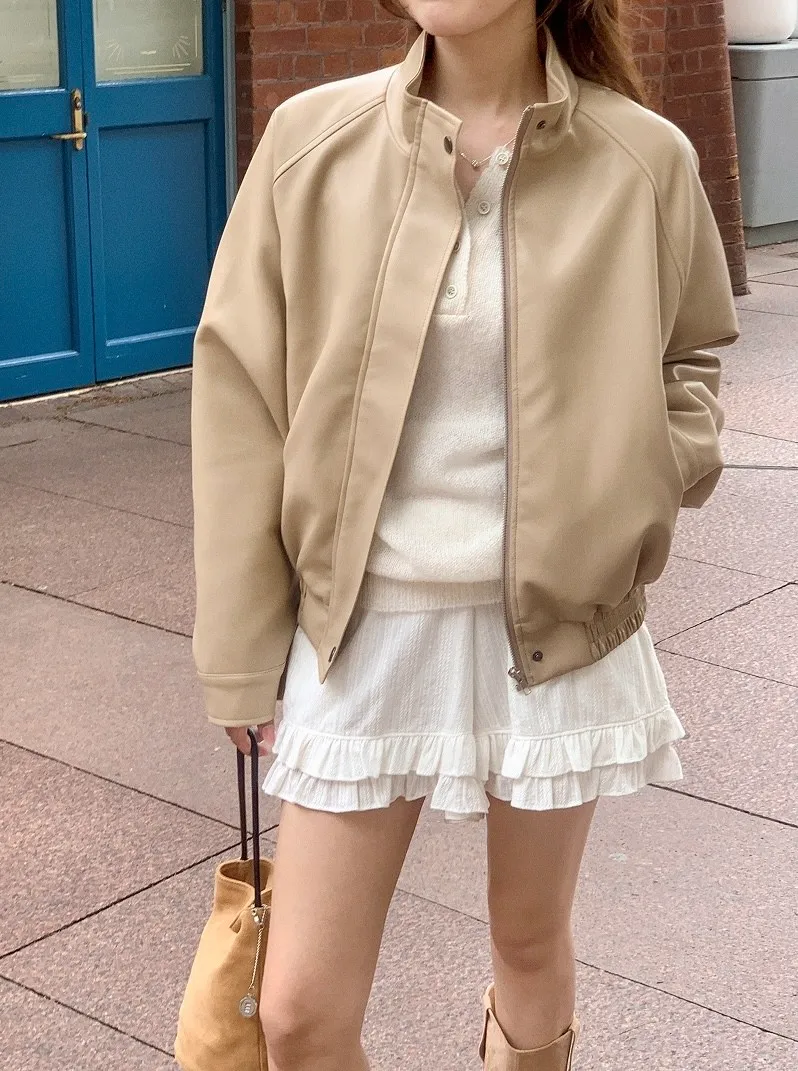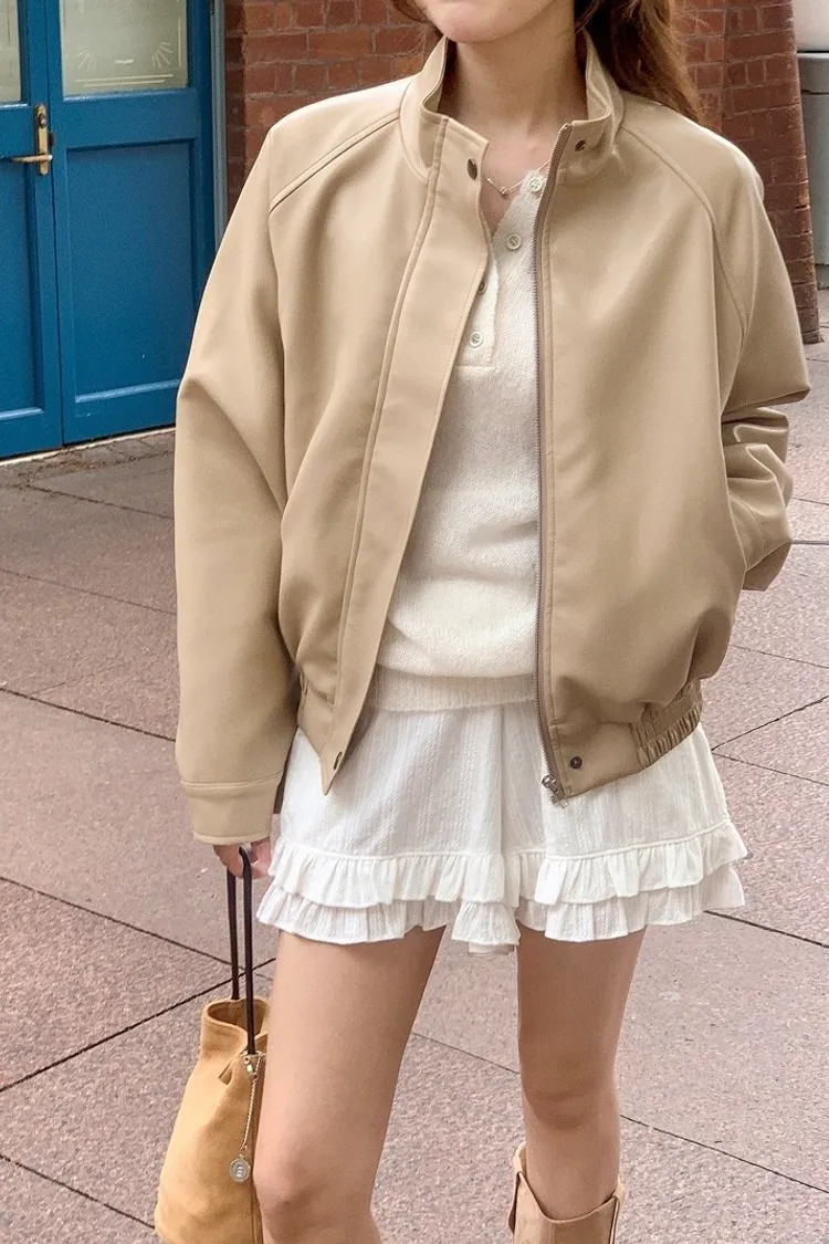 【闆娘推薦】奶油系柔軟拉鍊皮衣外套