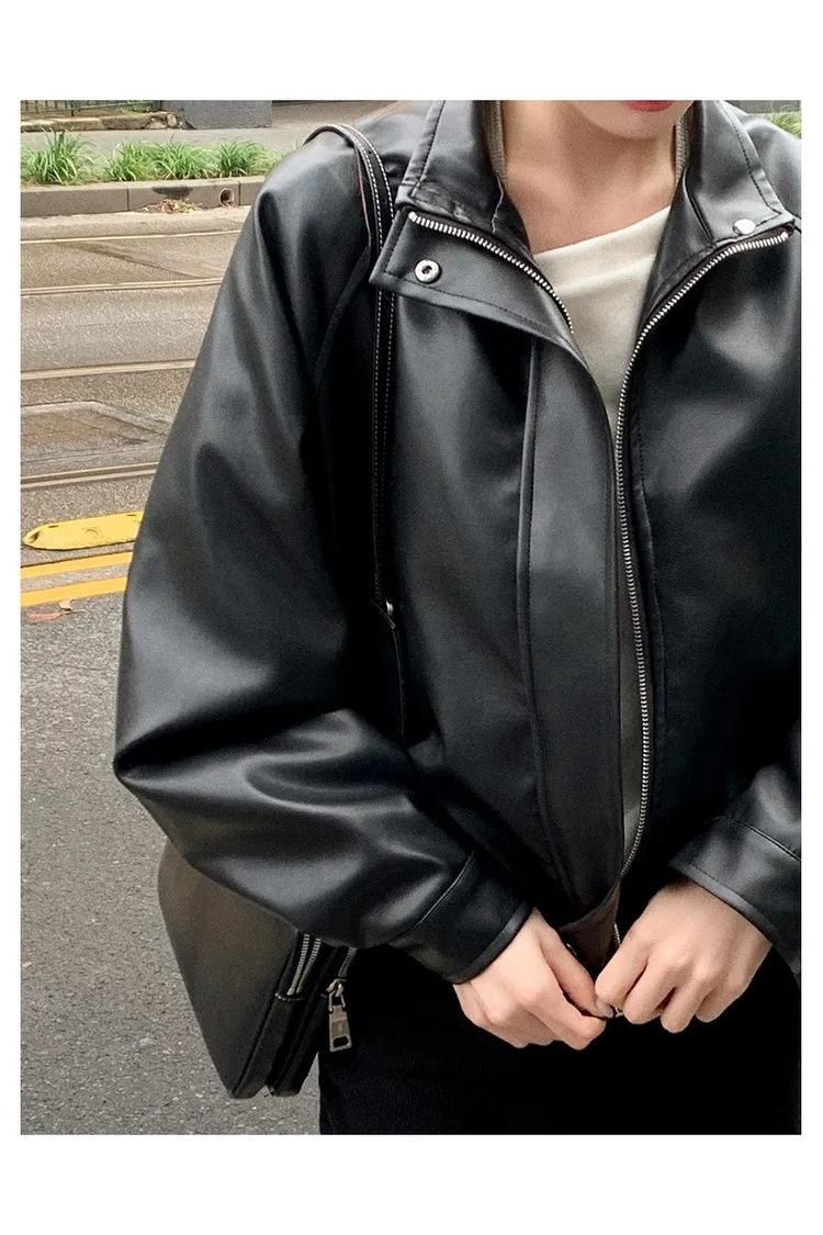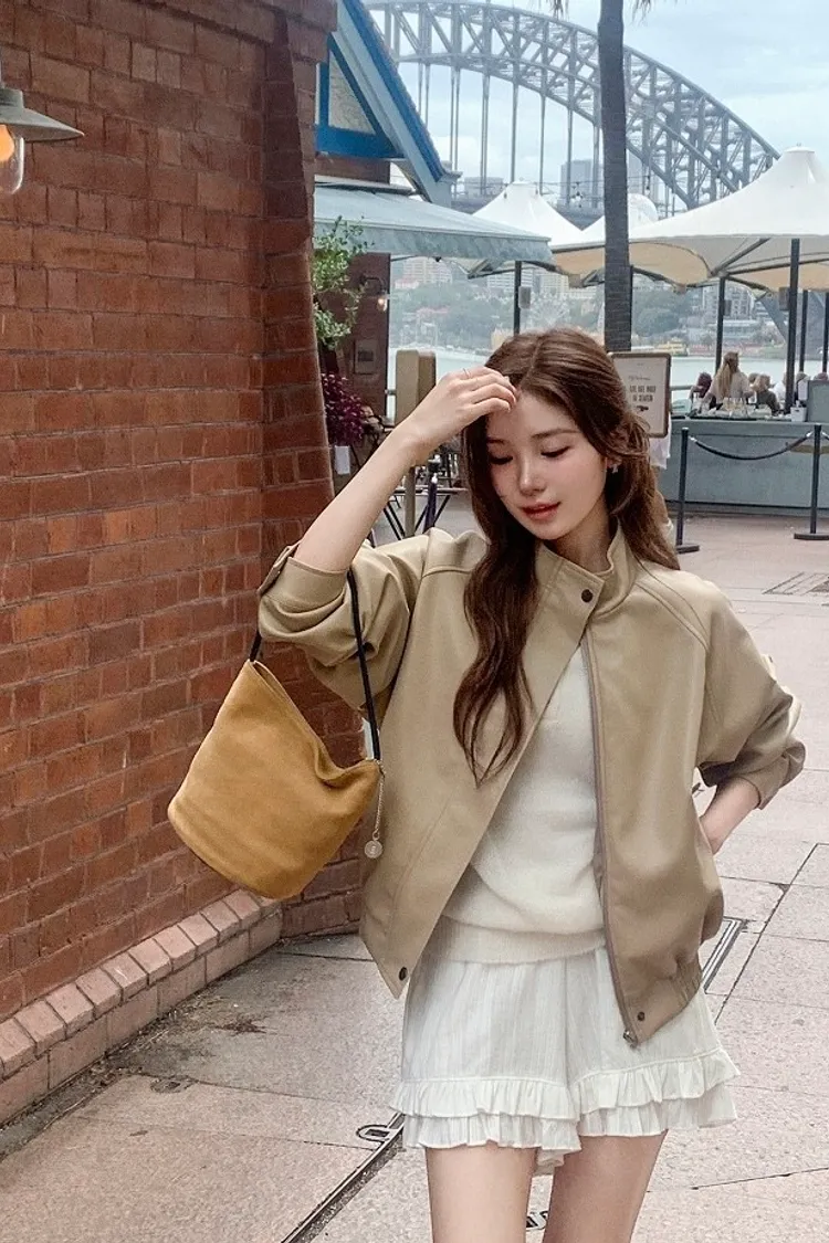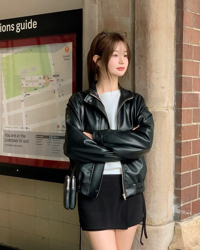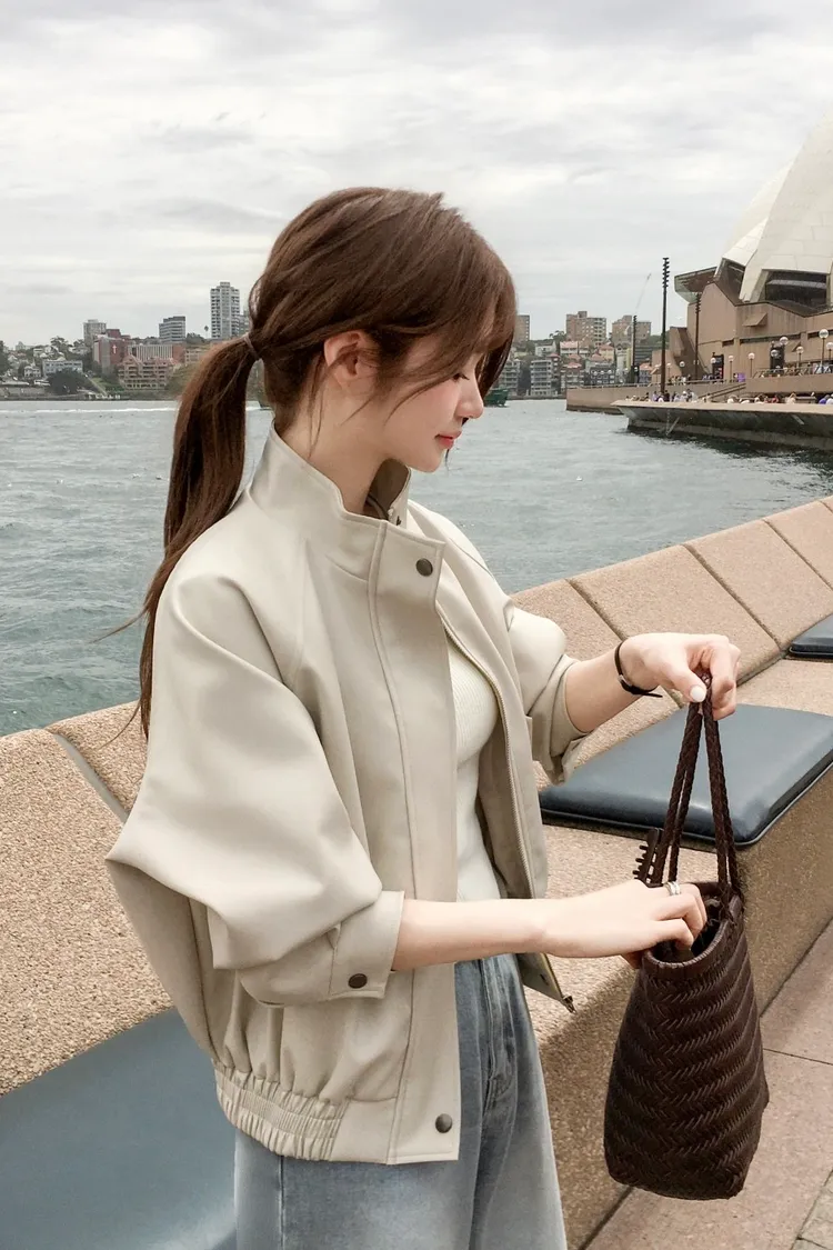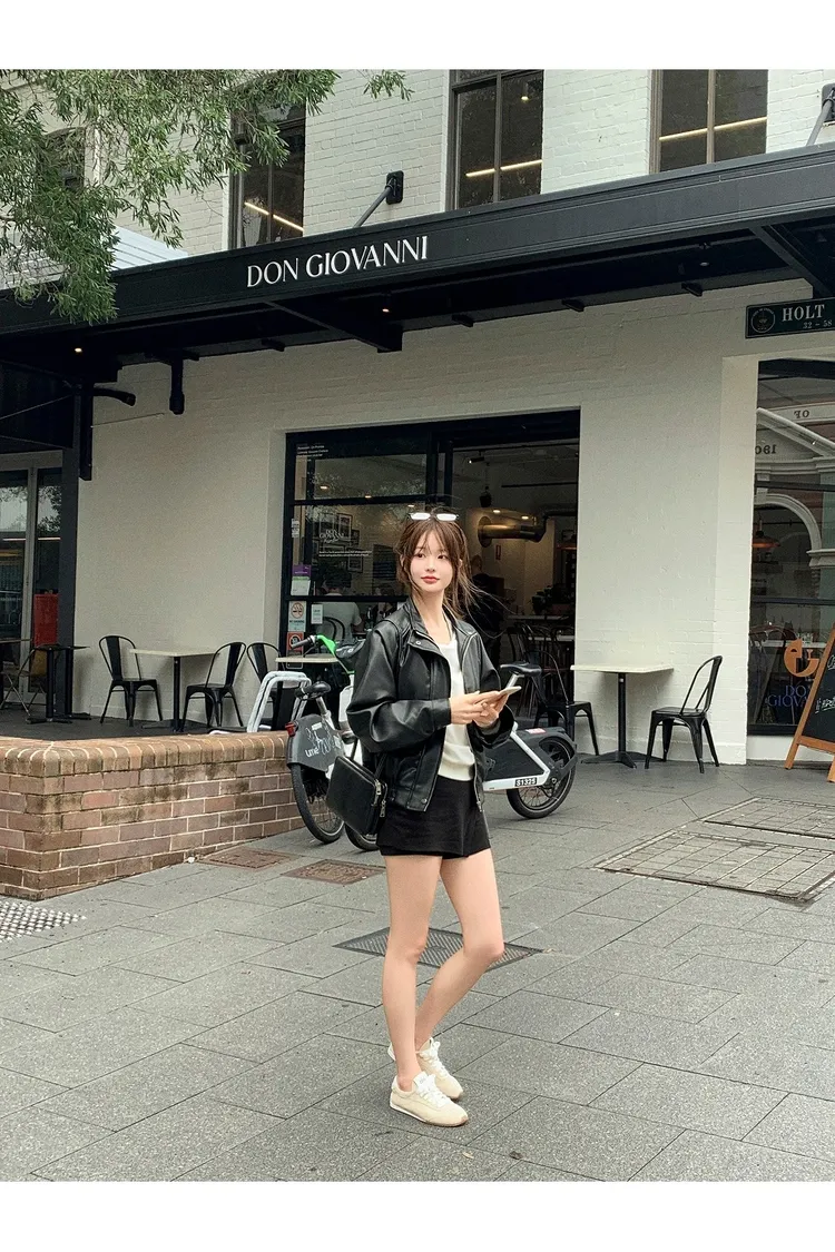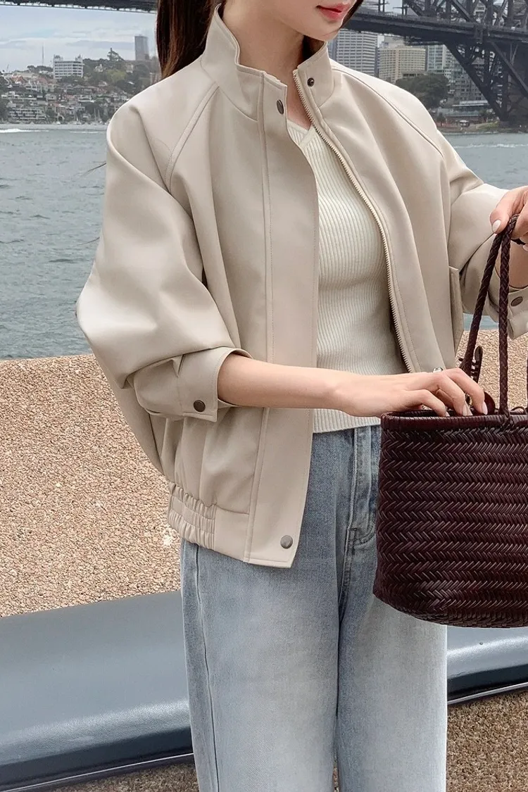 【闆娘推薦】奶油系柔軟拉鍊皮衣外套