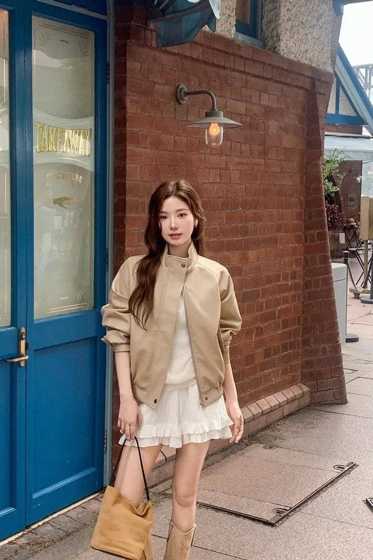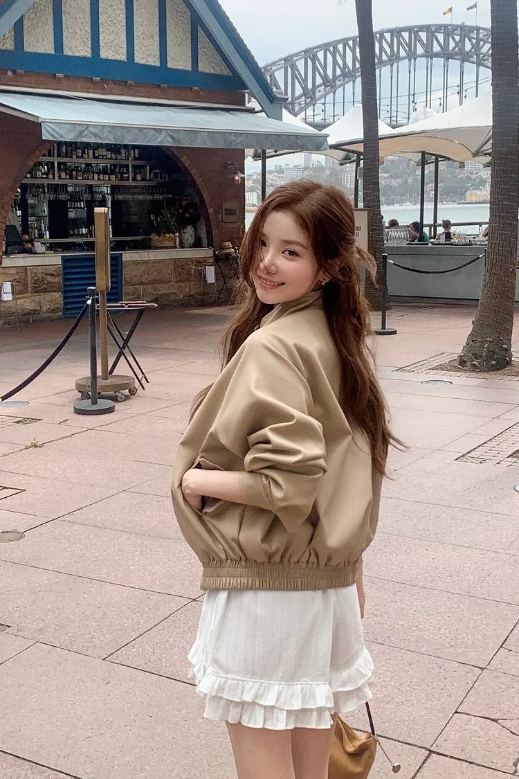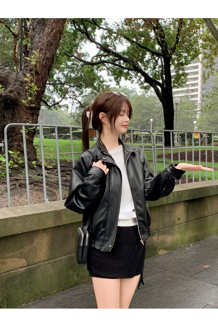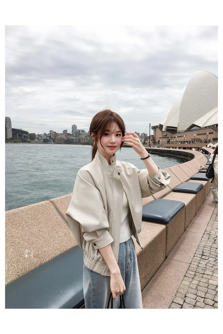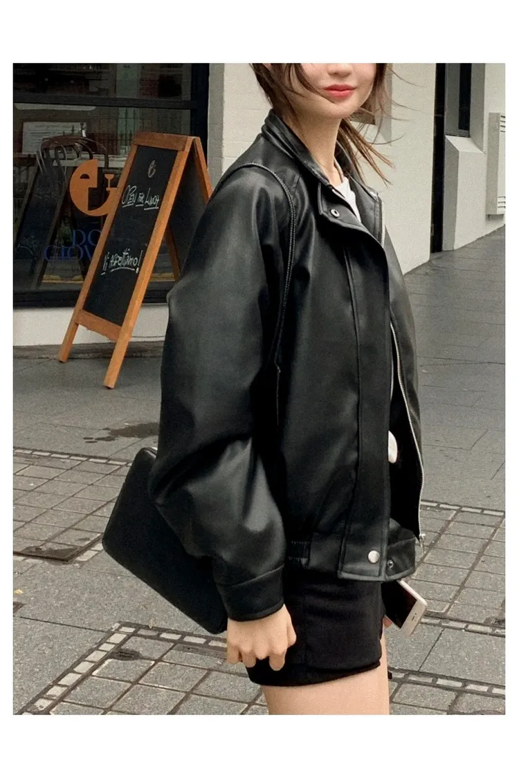 【闆娘推薦】奶油系柔軟拉鍊皮衣外套
